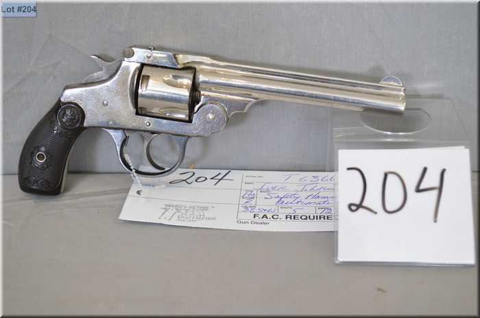 Iver Johnson Mod Safety Hammer Automatic .38 S & W cal 5 shot Revolver w/ 127 mm bbl [ nickel finished starting to flake in some areas, good checkered Owl Face grips, appears to function well ] Ser # T63669 Retricted Cert # 15264764