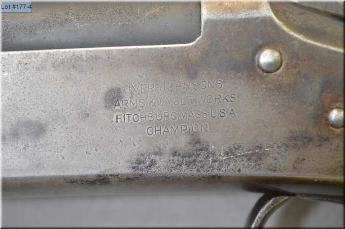 Iver Johnson Model Champion .12 Ga single shot break action Shotgun w/ barrel shortened to 20" [ re-blued finish, traces of case color with some pitting to reciever, rounded pistol grip stock , good forend, Iver Johnson butt plate ] Ser # 50740