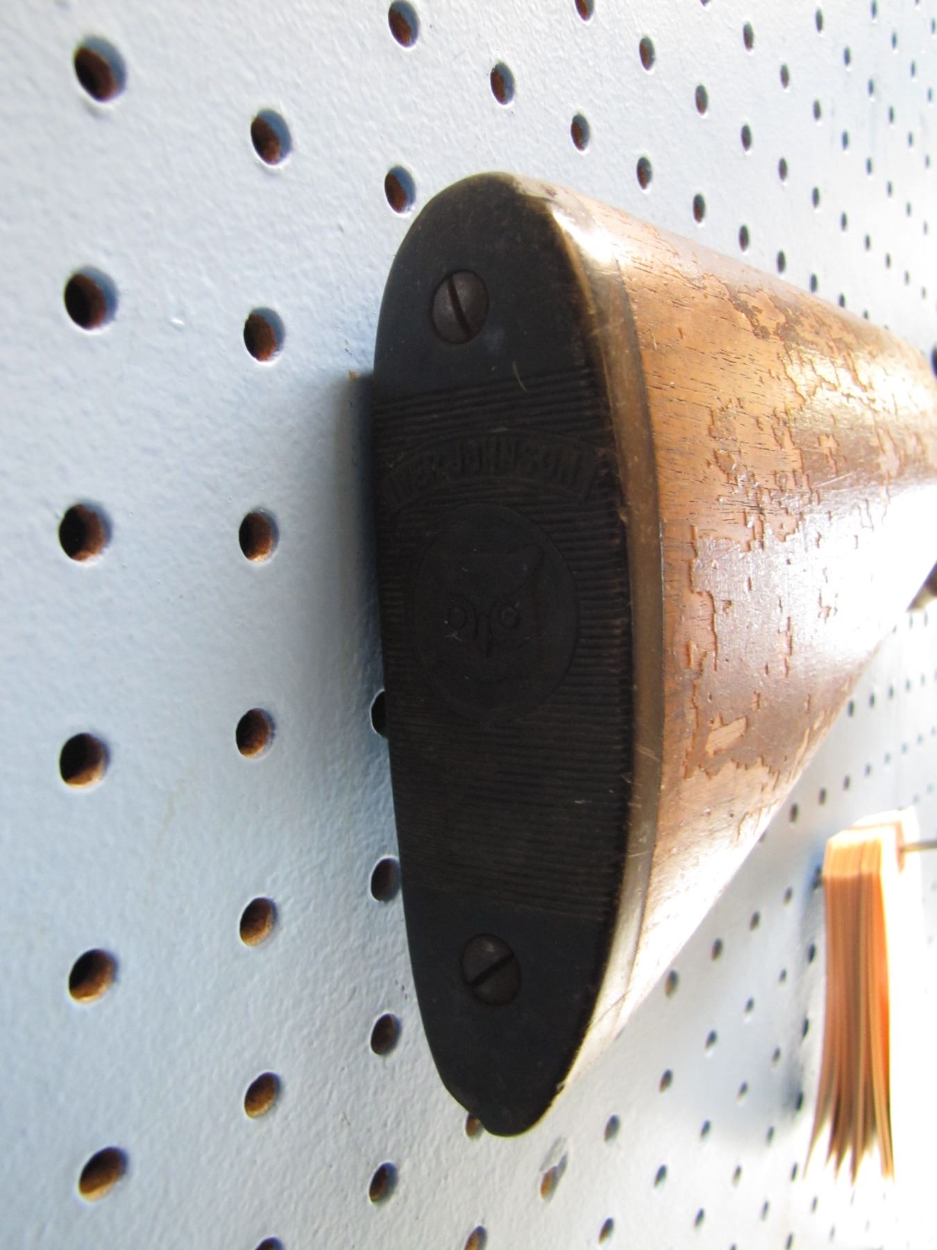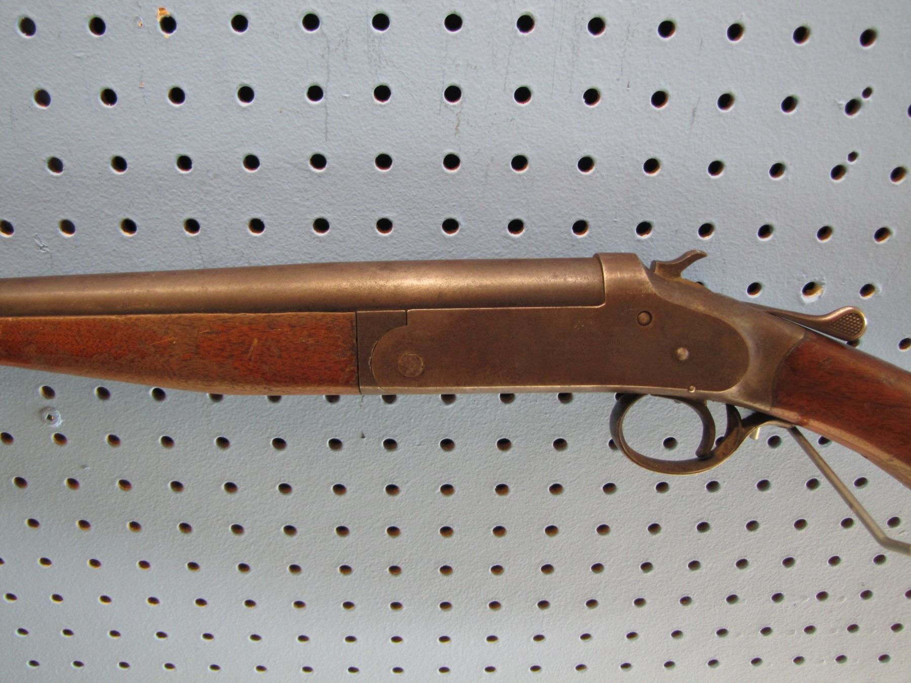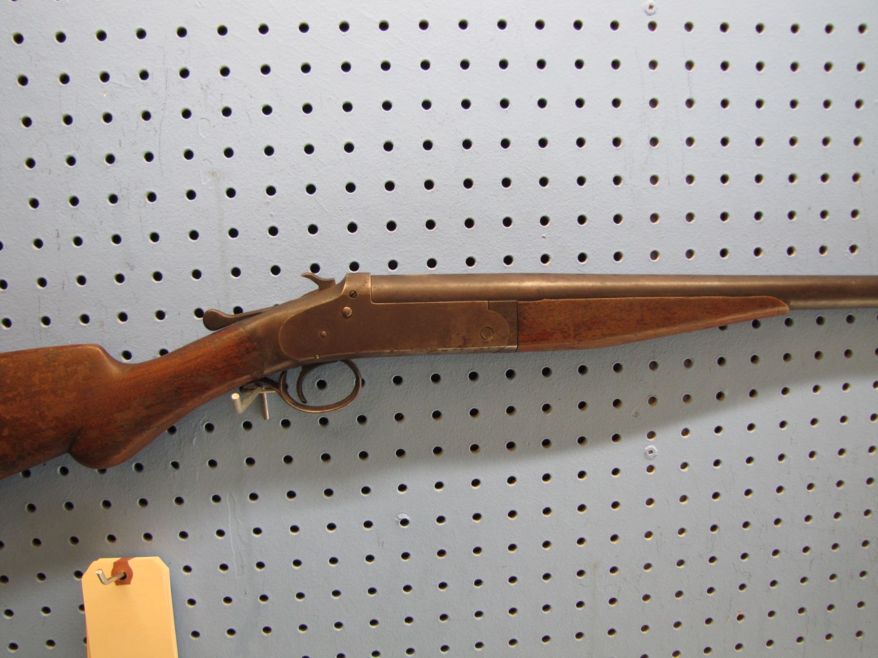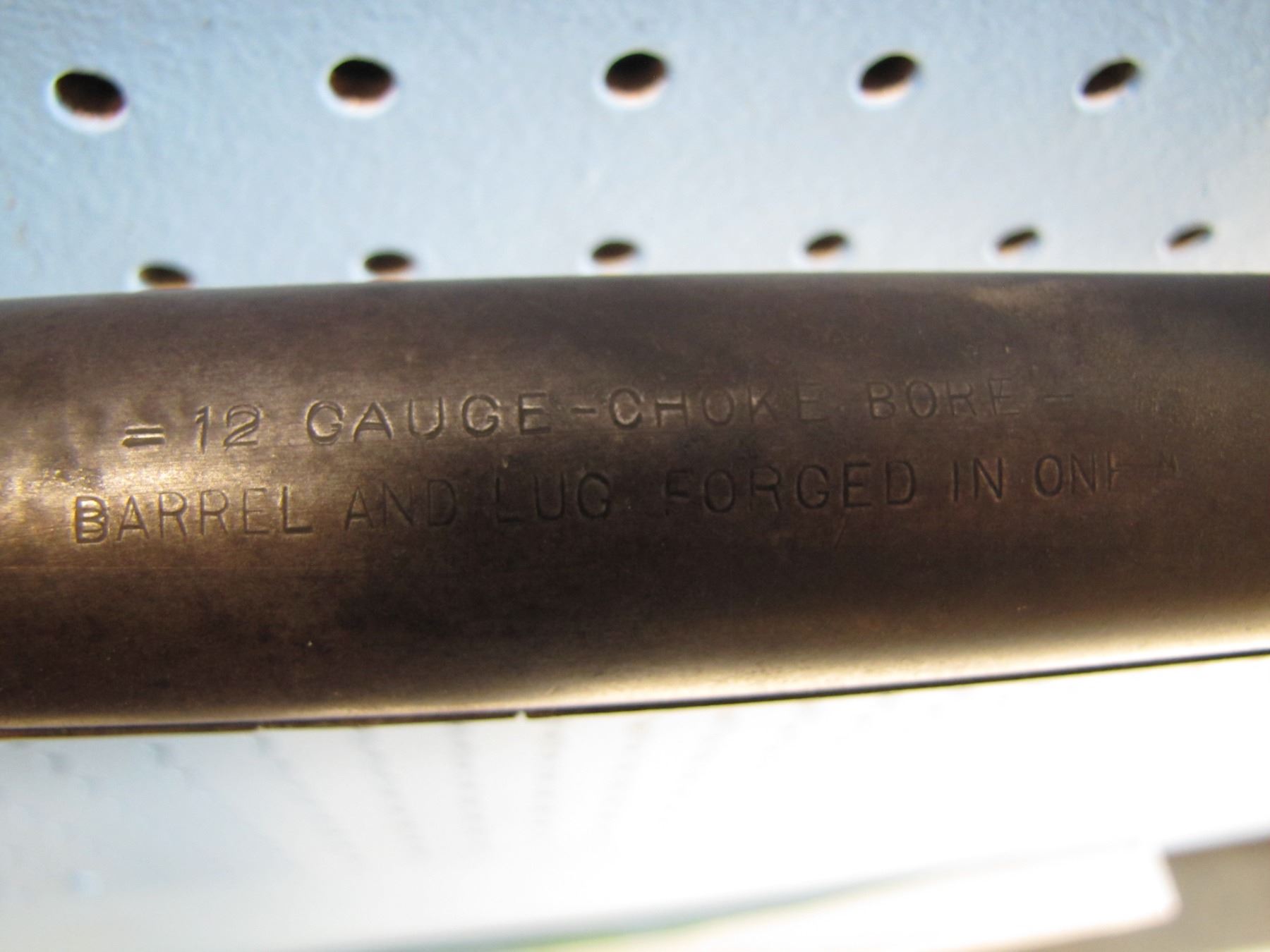 Iver Johnson Model champion, 12 gauge choke bore, single shot break open shotgun varnish coming off stocking places