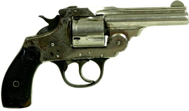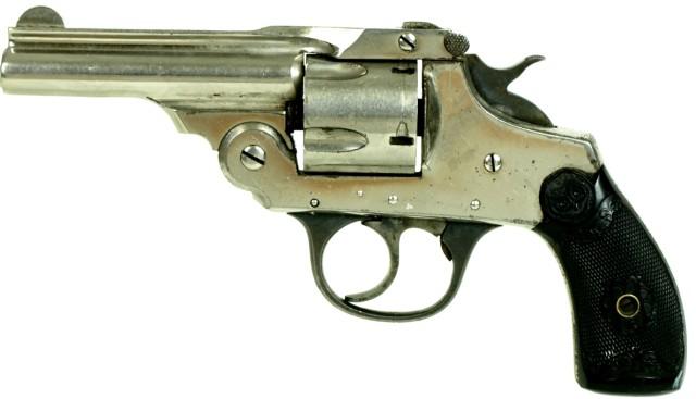 Iver Johnson double action .38 cal. SN 32742 revolver with nickel finish and black hard rubber grips. Good functioning action with good bore. FFL required.