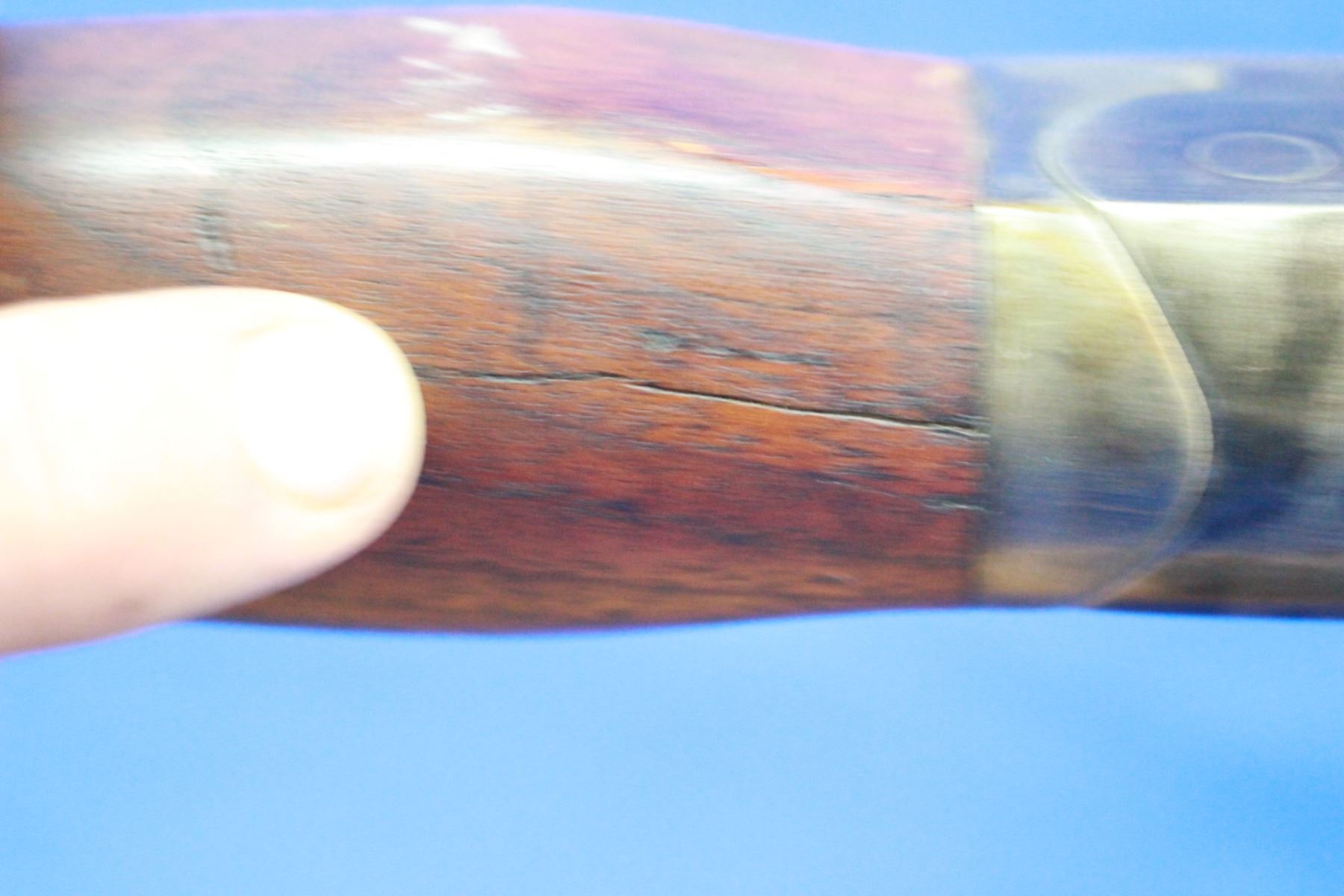 12 ga.; Choke Bored; 30" Barrel; Bore shows use but Clean & Shiny; Hinged Break; Fore-end has a Small Crack; Rear Stock also has a Crack