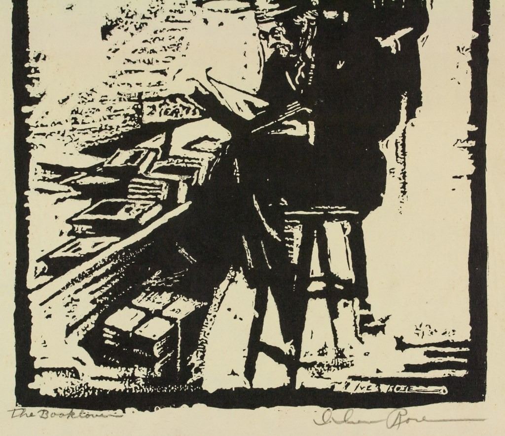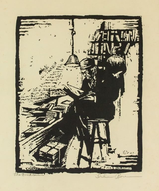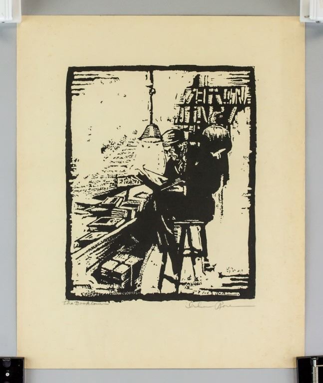 Lithograph on paper. Featuring a portrait of a seated man. Signed Iver Rose and inscribed "The Book Lovers" on the lower right and lower left corner, respectively. Attributed to Iver Rose (1899-1972, American). 39 x 32 cm (15.25 x 12.5 inches). PROVENANCE: Private American collection (Massachusetts)