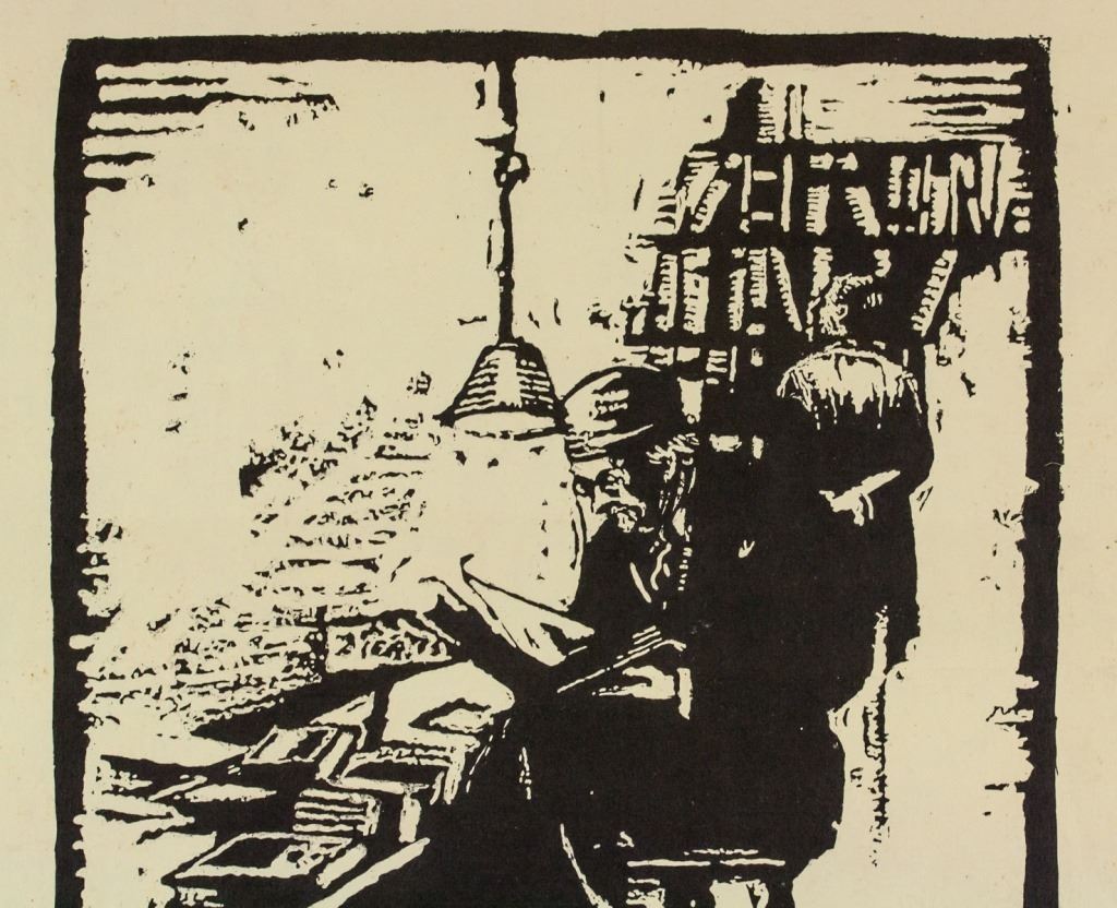 Lithograph on paper. Featuring a portrait of a seated man. Signed Iver Rose and inscribed "The Book Lovers" on the lower right and lower left corner, respectively. Attributed to Iver Rose (1899-1972, American). 39 x 32 cm (15.25 x 12.5 inches). PROVENANCE: Private American collection (Massachusetts)