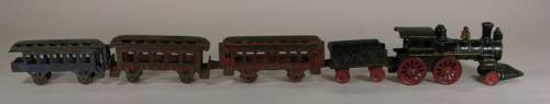 Ives cast iron train engine/tender with two passenger cars and caboose, All Original, Excellent Cond.