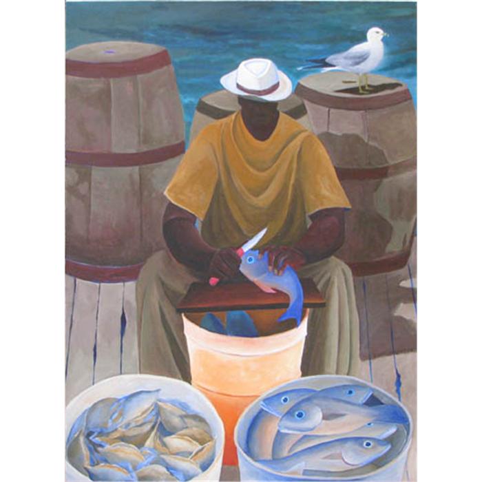 Description: Known for his paintings in bright colors of African-American figures, Ivey Hayes is from North Carolina where he received his BA degree from North Carolina Central University and in 1975, his MA degree from the University of North Carolina at Greensboro. He received the Presidential and Celebrity awards at the North Carolina Azalea Festival Master Arts Exhibit held in Wilmington, NC. The Charlie Rose Show has featured his artwork, and it has been exhibited at the US Capitol Rotunda in Washington, D.C., He created the artwork for the First Annual North Carolina Blueberry Festival. In 2005, Ivey Hayes was selected to create the art for the 2005 North Carolina Azalea Festival held annually in Wilmington, North Carolina. A major one-man show, Five American Artists, featuring Hayes as well as Romare Bearden, Al Carter, Minnie Evans and Faith Ringgold was held at the Louise Wells Cameron Art Museum in Wilmington, NC, May 19-September 17, 2006.