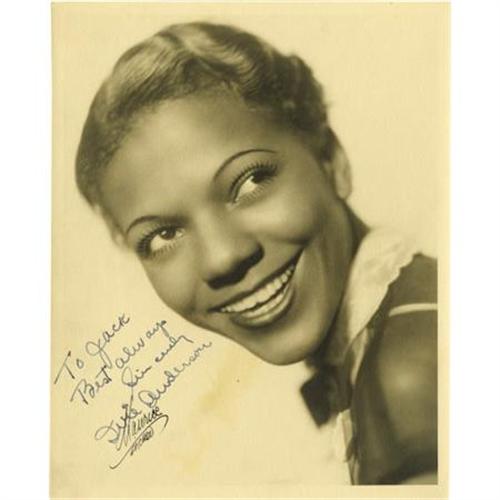 <B>Ivie Anderson Signed Photo.</B></I> A b&w 8" x 10" photo of the Jazz singer, inscribed and signed by her in blue fountain ink. In Very Fine condition with mild overall toning.<BR><BR><b>Shipping:</b> Flat Material, Small (<a target="_blank" href="http://www.heritageauctions.com/common/shipping.php">view shipping information</a>)