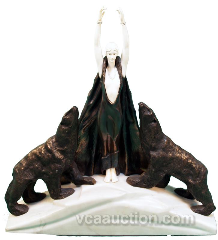 Ivory & Bronze Statue, G. Rivierc - With 2 Bears & Lady