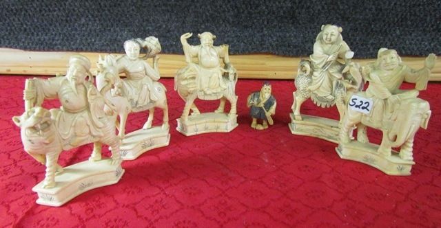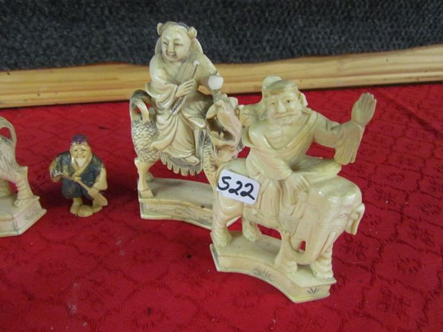 Six Ivory Oriental carved early pieces - condition with age - some small damage