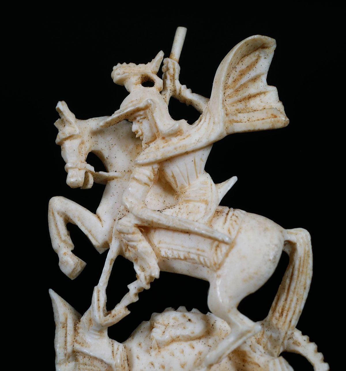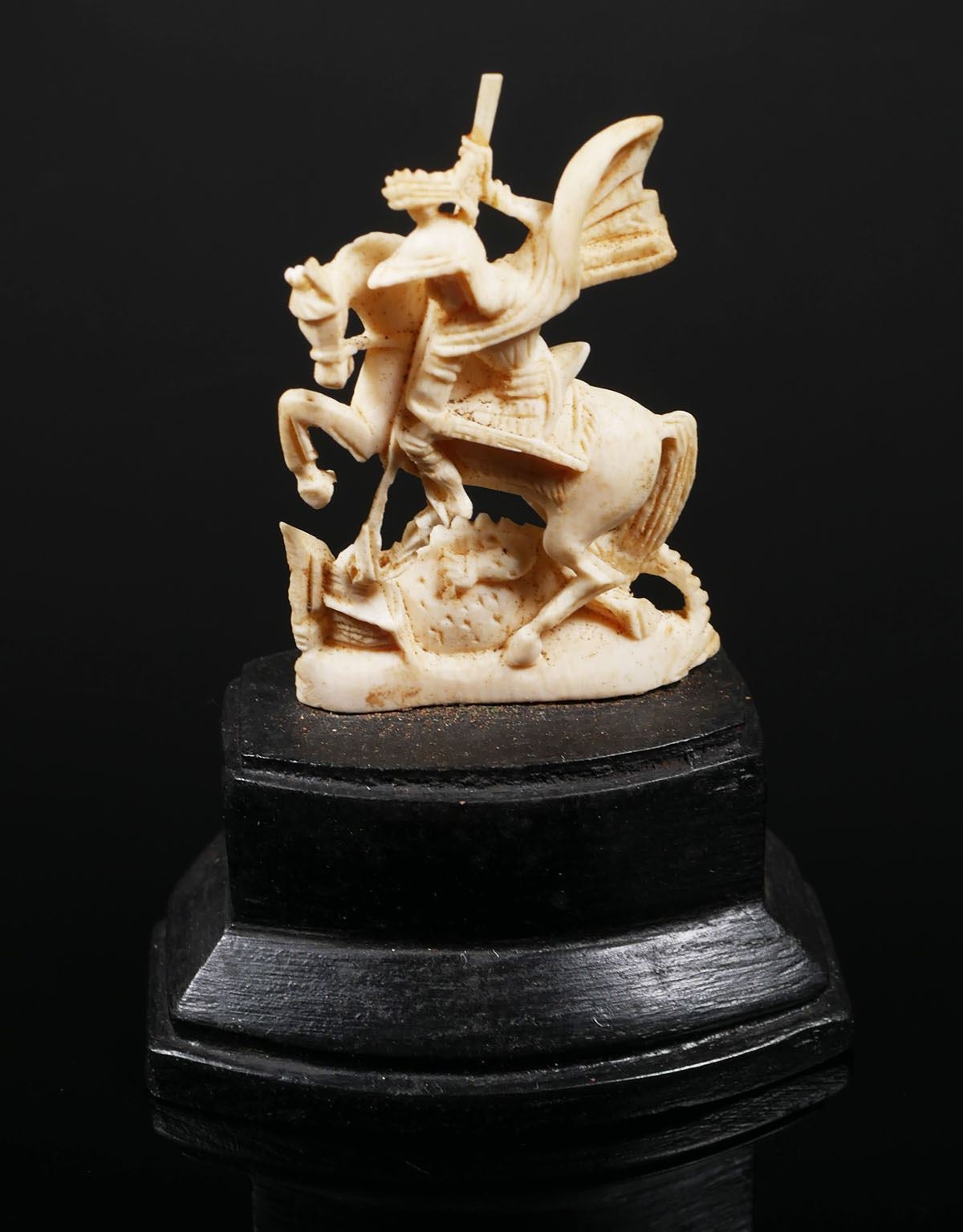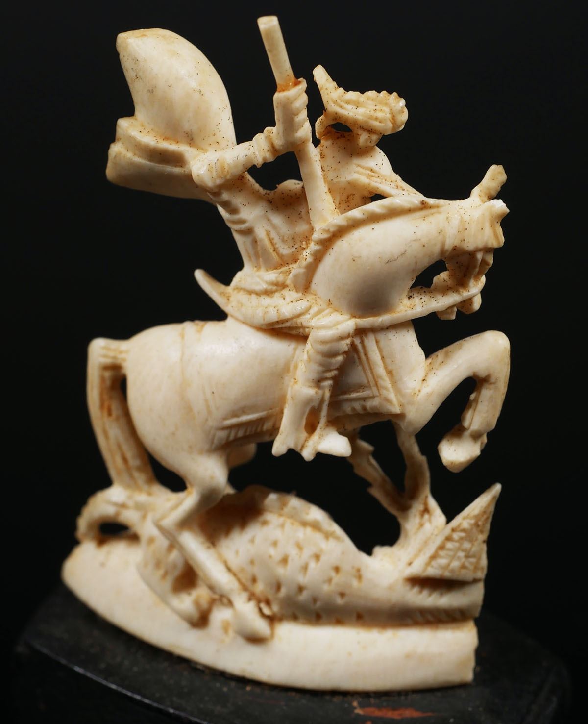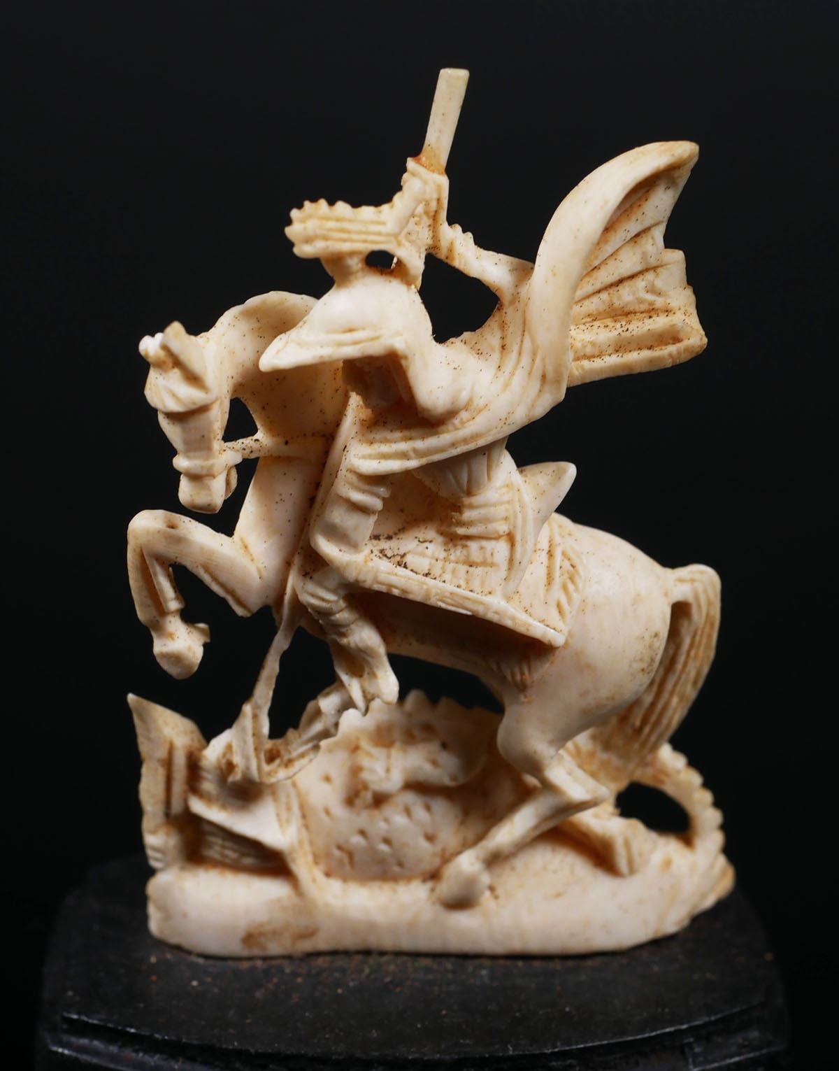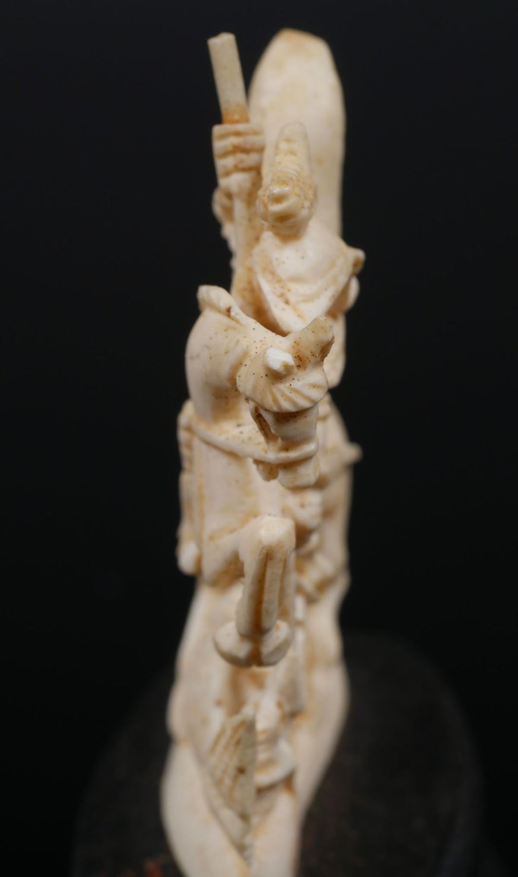 Measures about 1-1/2" long x 1" wide, 5 5/8" tall on base. PLEASE NOTE: This is antique, pre-ban African elephant ivory and can be shipped only where allowed by law.