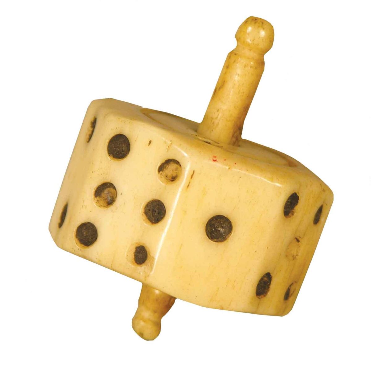 Ivory Dice Top. Small chip and crack otherwise good condition. Measures 1 1/2 inches tall.