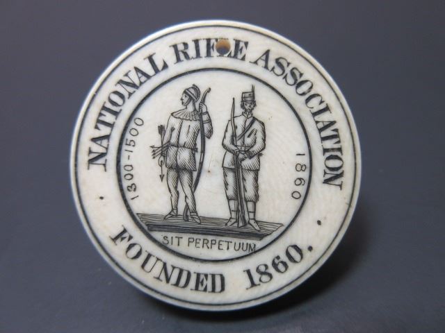 Ivory NRA Life Member Pass Medallion- Founded 1860- 1.6"- Signed By Mr. Henry Hamilton #1878