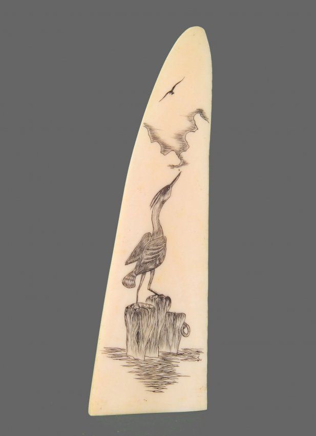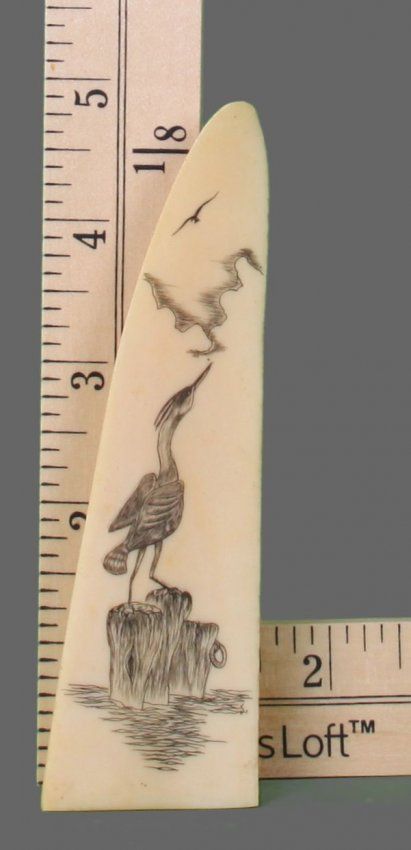 Ivory Scrimshaw of a Crane (Size: See Last Photo for Measurements)