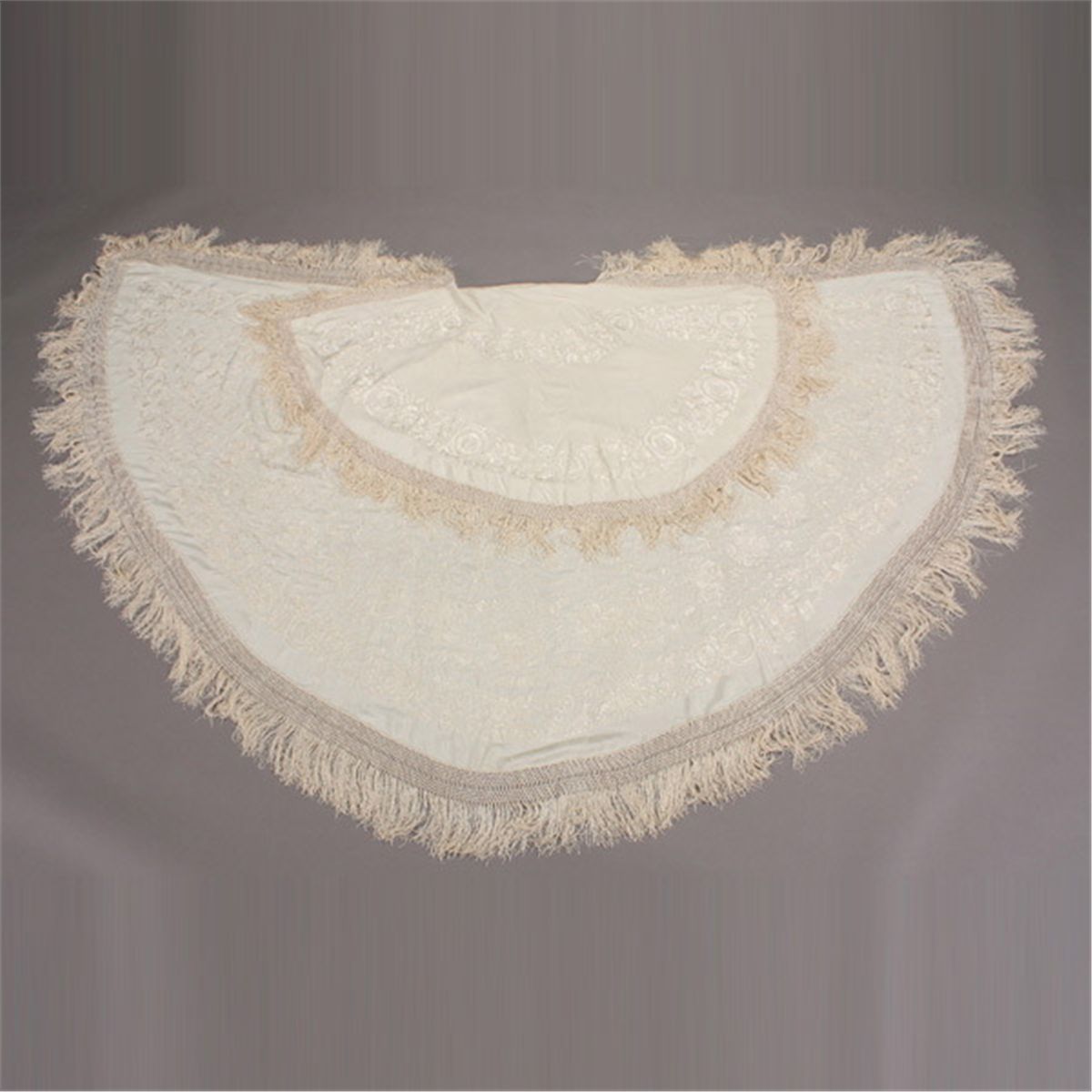Ivory Silk Embroidered Shawl {Height 47 inches, width 85 inches} [Good condition]