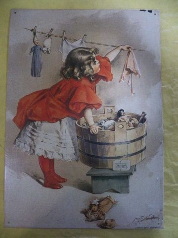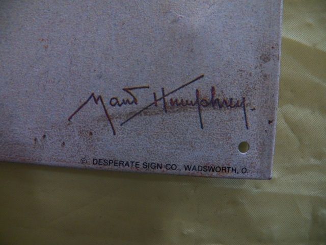 Tin sign signed on bottom Approx size 11 1/2 x 16 1/2
