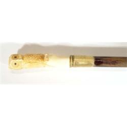 Ivory handled walking stick, the handled carved as an owl with beaded eyes