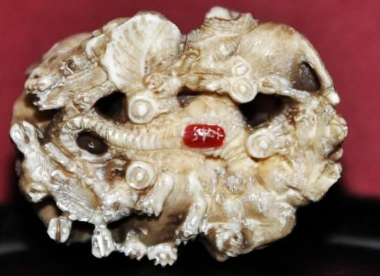 Normal 0 Ivory netsuke of a 12 horoscope animals, signed. Nicely carved netsuke with 12 animals. This item contains asubstance which is protected and restricted in the United States and byinternational convention, and can only be shipped within the country in whichit is located at the time of the sale.4 cm wide and 3cm deep and 2,7 cm tall. Good.