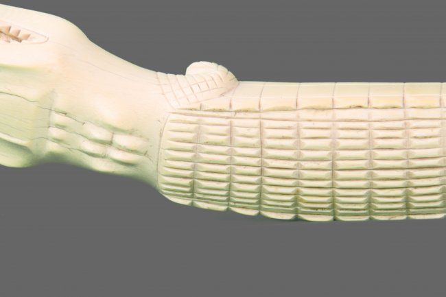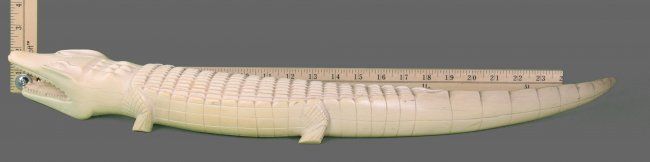 Ivory tusk carved alligator (Size: See Last Photo for Measurements). WILL NOT SHIP OUTSIDE OF THE UNITED STATES OF AMERICA.