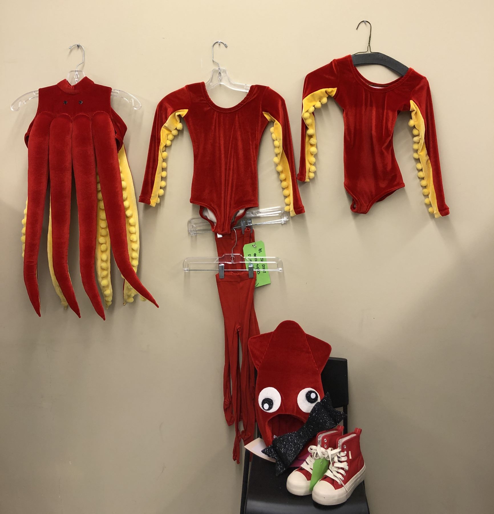 "Ivy + Bean Movie" IVY stunt squid costume includes squid head / 2 leotards/ 3 tights / squid waist/ black bow tie and ivy dance double sneakers