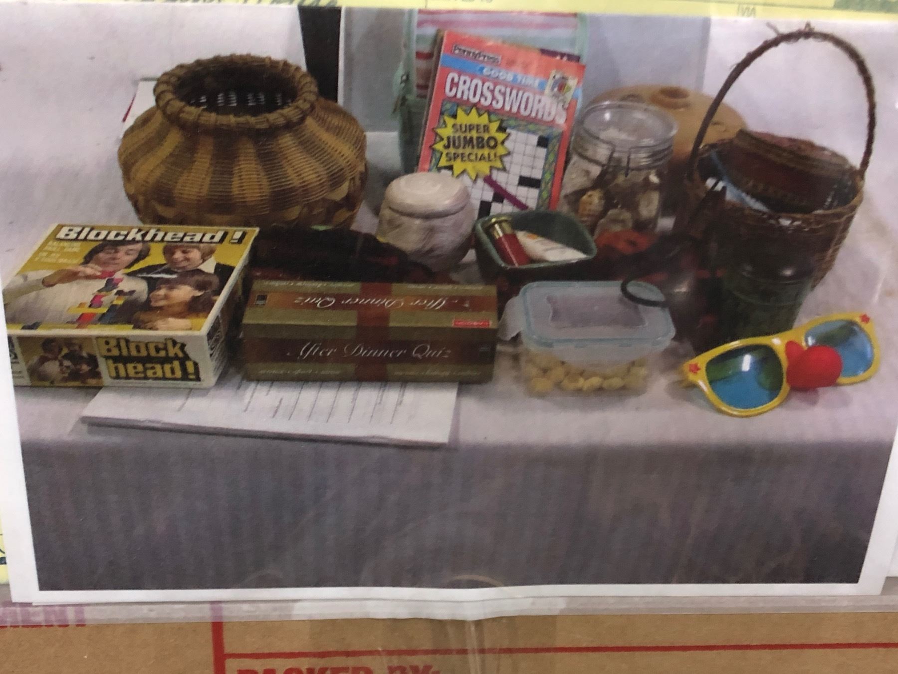 "Ivy + Bean Movie" Large group of mics sec dec items - Includes Table lamp wicker light fixtures, star light string, wicker basket, kids toys etc.