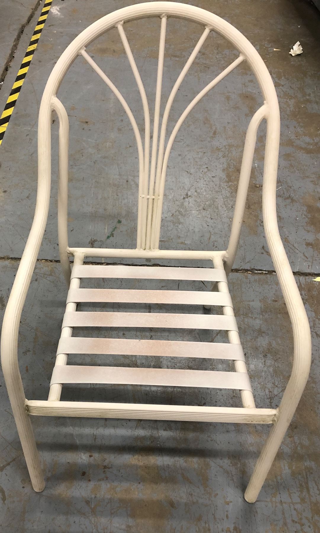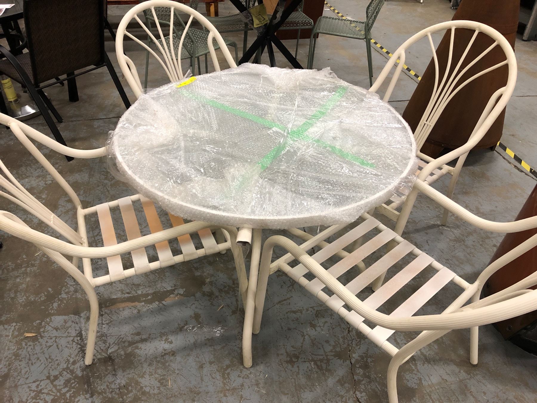 "Ivy + Bean Movie" - Set of four patio chair with glass top round table (Table approximately 40in diameter 28in high)