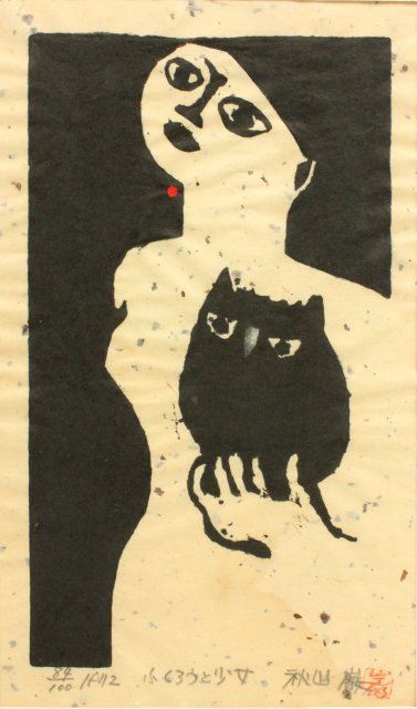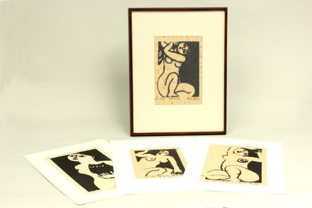 One framed, three unframed in portfolio. All signed prints. Numbered. 1970's. Iwao Akiyama, Japanese (b. 1921). Largest approx. 12.75" x 7.25".