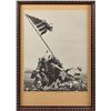 Iconic vintage matte-finish 10 x 13 photo of the Iwo Jima flag raising affixed to an 11.5 x 16 mount, signed on the mount in ink, "John H. Bradley Ph. M 2/C, U.S. Navy," "Ira H. Hayes, Pfc., U.S.M.C.," and "Rene A. Gagnon Pfc. U.S.M.C." Framed and in fine condition, with some small areas of emulsion loss to the lower edges of the image. A highly sought-after photograph in signed examples; Hayes's autograph is especially scarce, as he passed away in 1955.