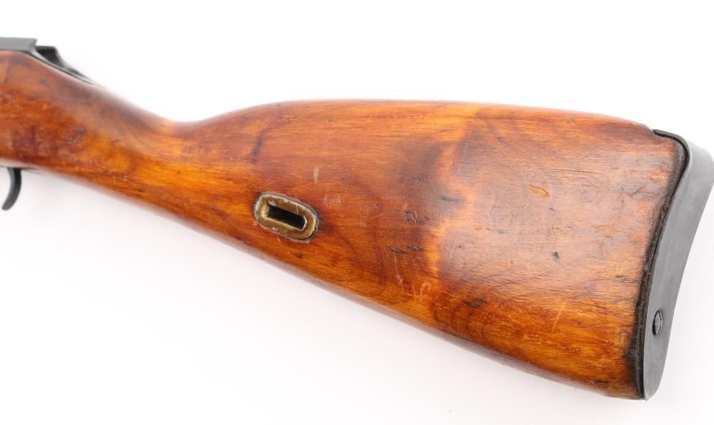 Russian (Soviet Union) military bolt action rifle imported by IO Inc, Monroe NC. Missing Bolt & Magazine. Dated 1944. Features 20" barrel, hooded post front & tangent rear sight, cleaning rod, sling slots. Bore is Fair condition, dark & corroded, strong rifling. Retains 85% dark blued finish with handling marks. Varnished hardwood stock is very good condition with scrapes, dings. Missing handguard. Appears arsenal refinished. Original serial number matching where observed, importer applied number on receiver. Condition is NRA Fair (Missing Many Parts) *** C&R Firearm ***