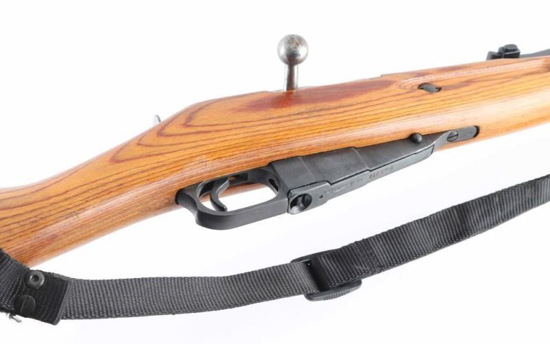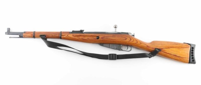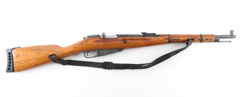 SN: M34187 Russian military bolt action rifle manufactured circa 1943, imported by TG, Knoxville TN. Features 20" barrel, post front sight inside protective ring, tangent style rear sight, manual safety, straight bolt handle, sling slots, cleaning rod under barrel. Bore is good condition. Retains 90% dark blued finish with small scratches, bare metal at sharp edges. Bolt assembly is bright, in the white, small amount of cleaned pitting on cocking piece. Wood is very good condition, some scratches & scuffing. Original arsenal number with Cyrillic alphabet letters is stamped on magazine (old number on mag stamped thru), bolt & barrel. Importer stamped new serial number on receiver. Includes very good quality black nylon sling, aftermarket rubber recoil pad held by one screw. Condition is NRA Very Good *** C&R Firearm ***