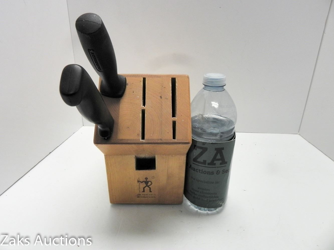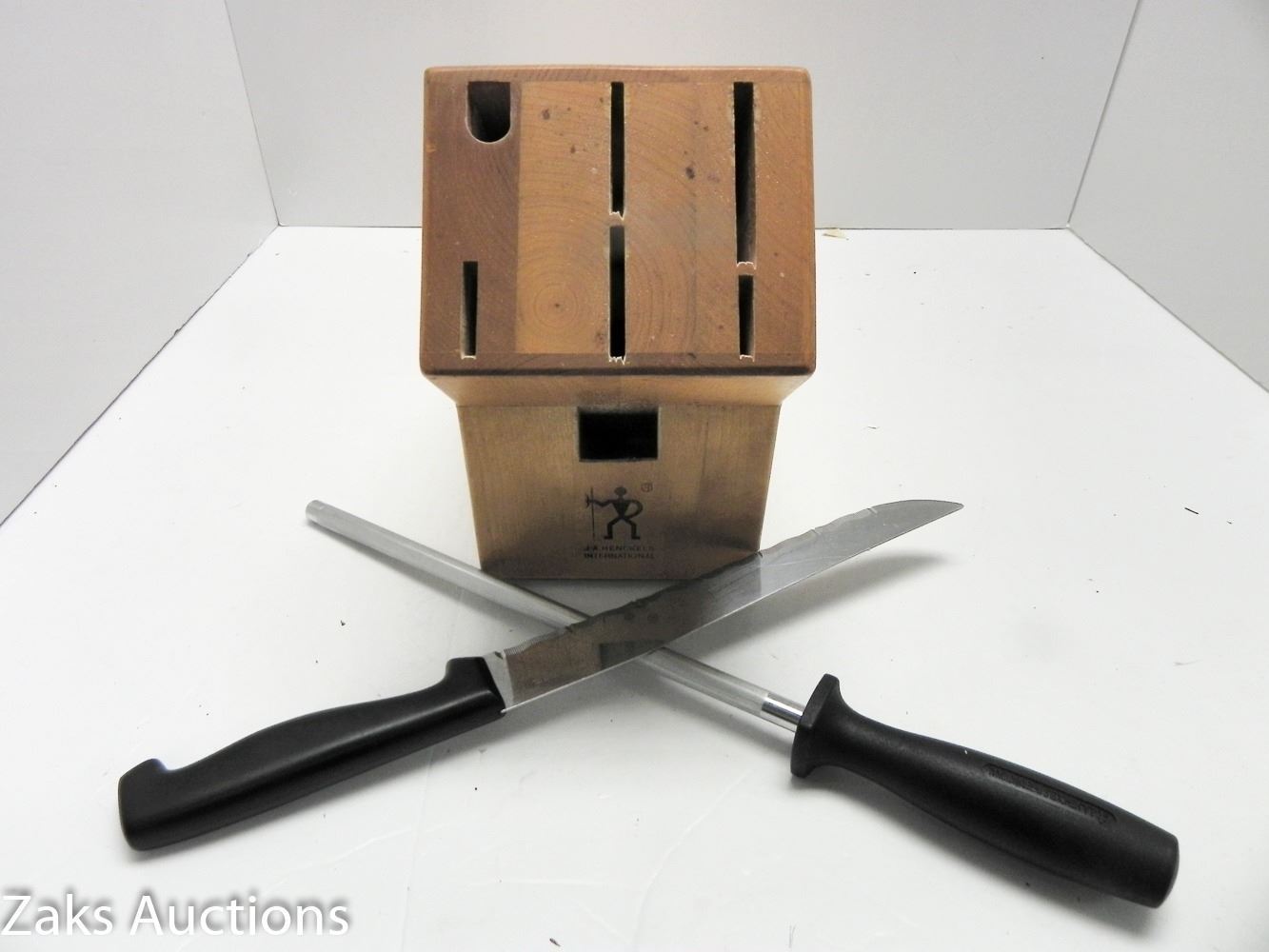 J.A. HENCKELS INT'L 6 KNIFE BLOCK COMES WITH SHARPENER AND 1 KNIFE