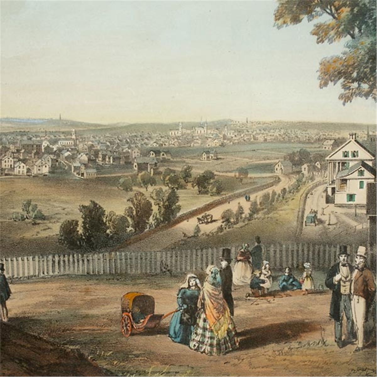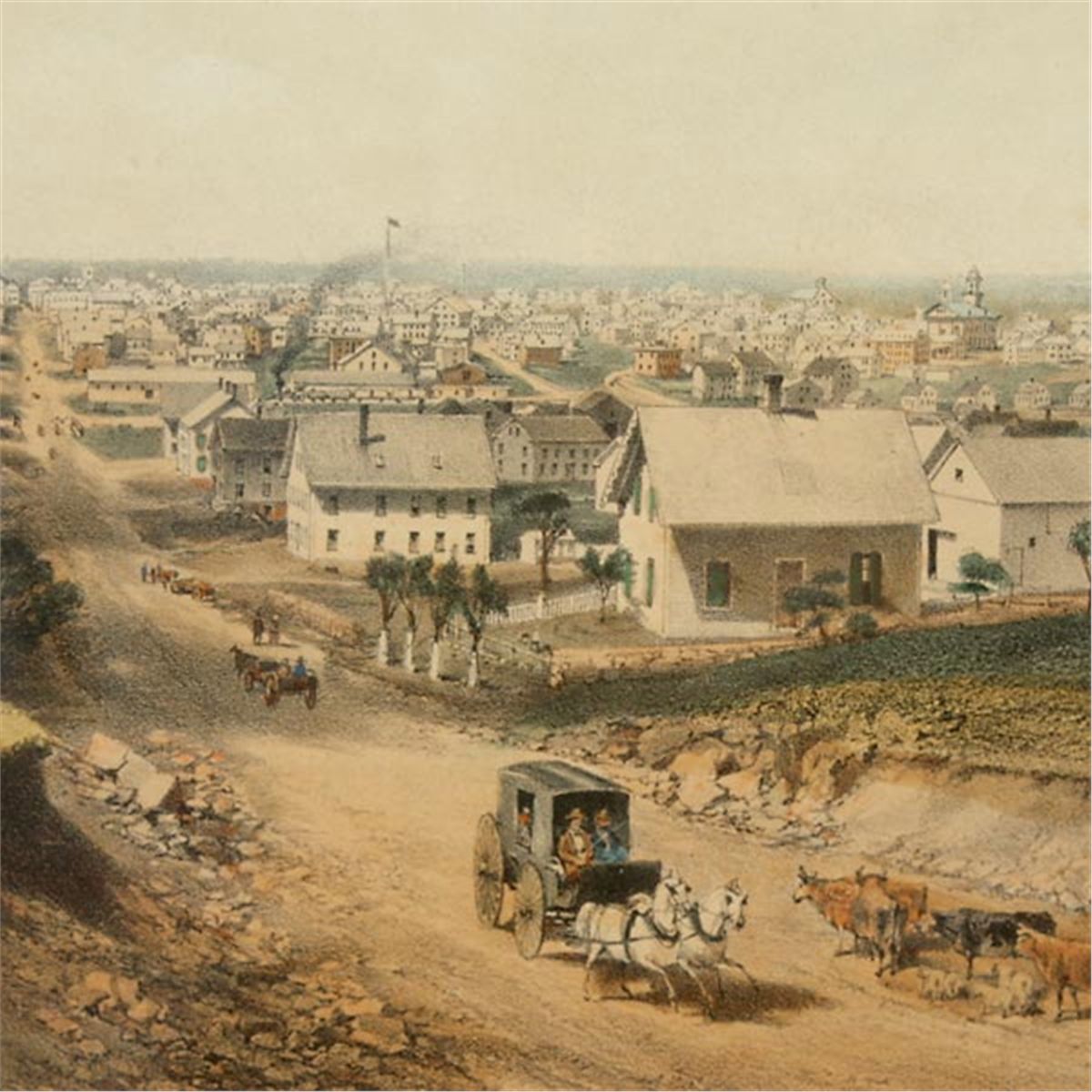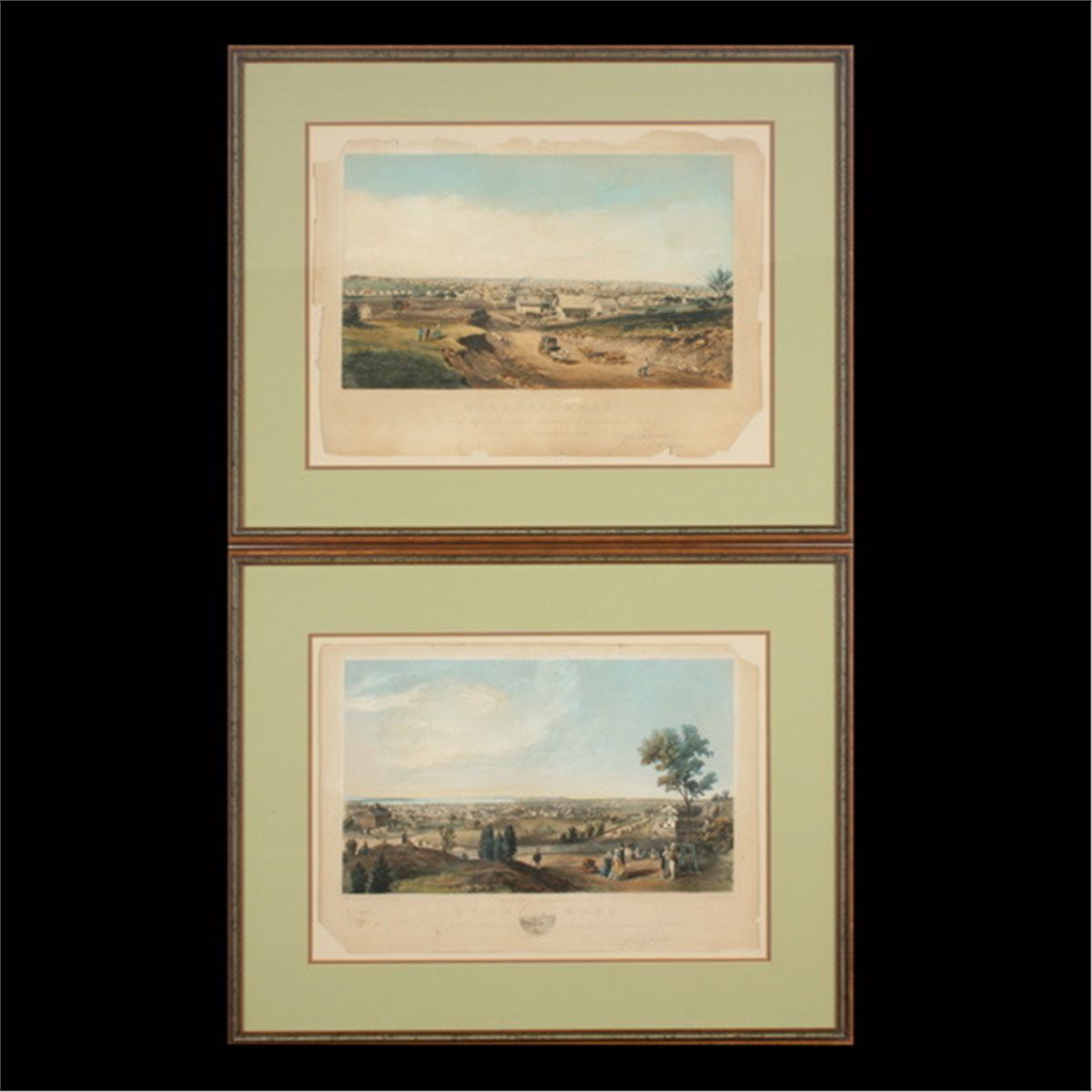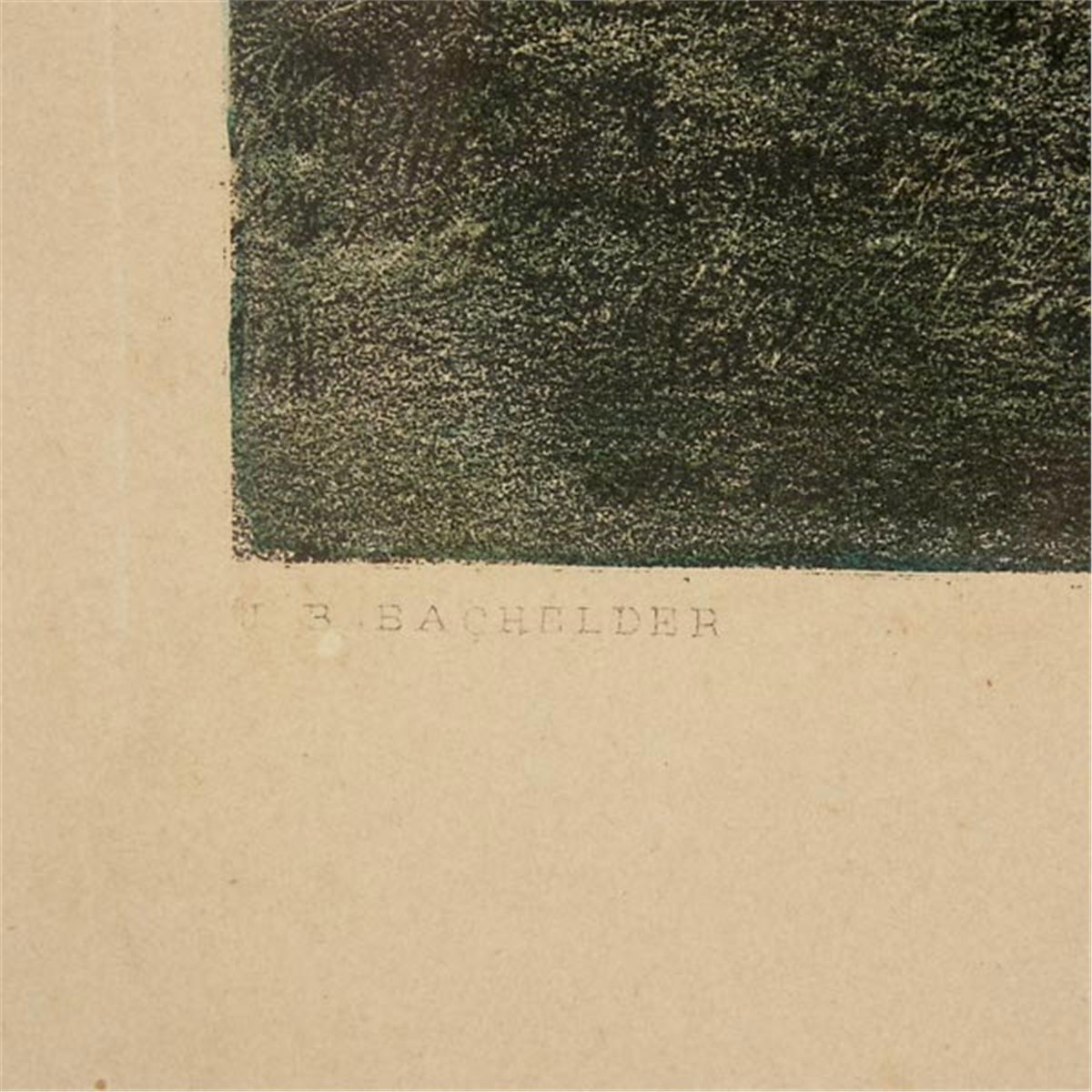 JOHATHAN BADGER BACHELDER (American 1825-1894) Two Works: Milford, Mass Lynn, Mass Color lithographs by the Endicott & Co NY Image: 10 x 15.50 inches/ 25.4 x 39.4 centimeters Frame: 21.25 x 25.25 inches/ 54 x 64.1 centimeters In Fair condition: Major edge losses, small creases throughout, time staining to paper. Framed, mounted and glazed