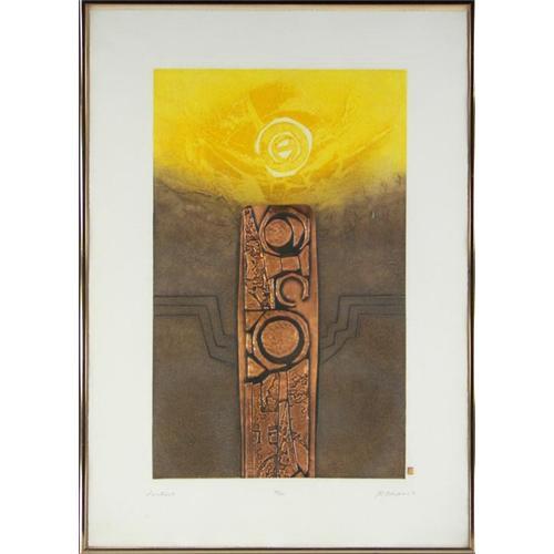 J.B. Thompson (1932-1984) (Texas) Copper Collage Collograph, "Sentinel", #40/100, 1976, image size 22" x 13 1/2", pencil signed