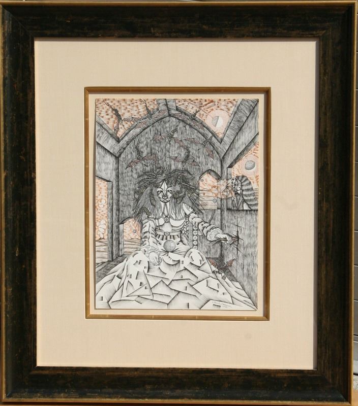 J. Benito Zamora, Tentacion, Pen and Ink Drawing