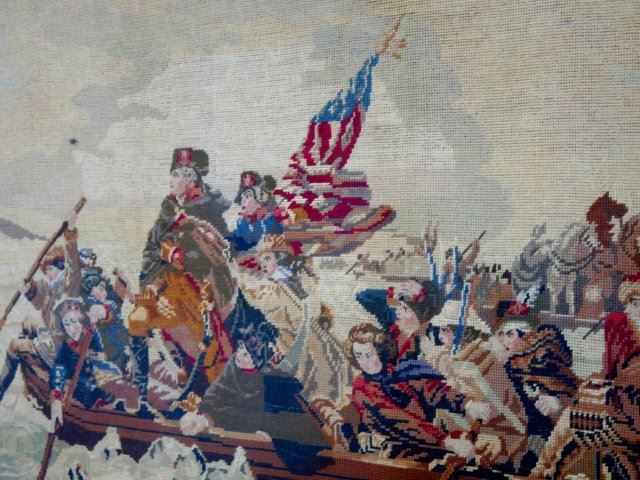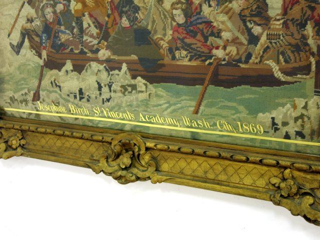 Needlepoint. Inscribed & dated in gilding: Josephine Birch, St. Vincents Academy, Wash. City 1869. Gildwood & gesso frame. Approx. 24" H x 32" W unframed, 32" H x 40" W framed. From the Tyndale Collection, Boonton NJ.