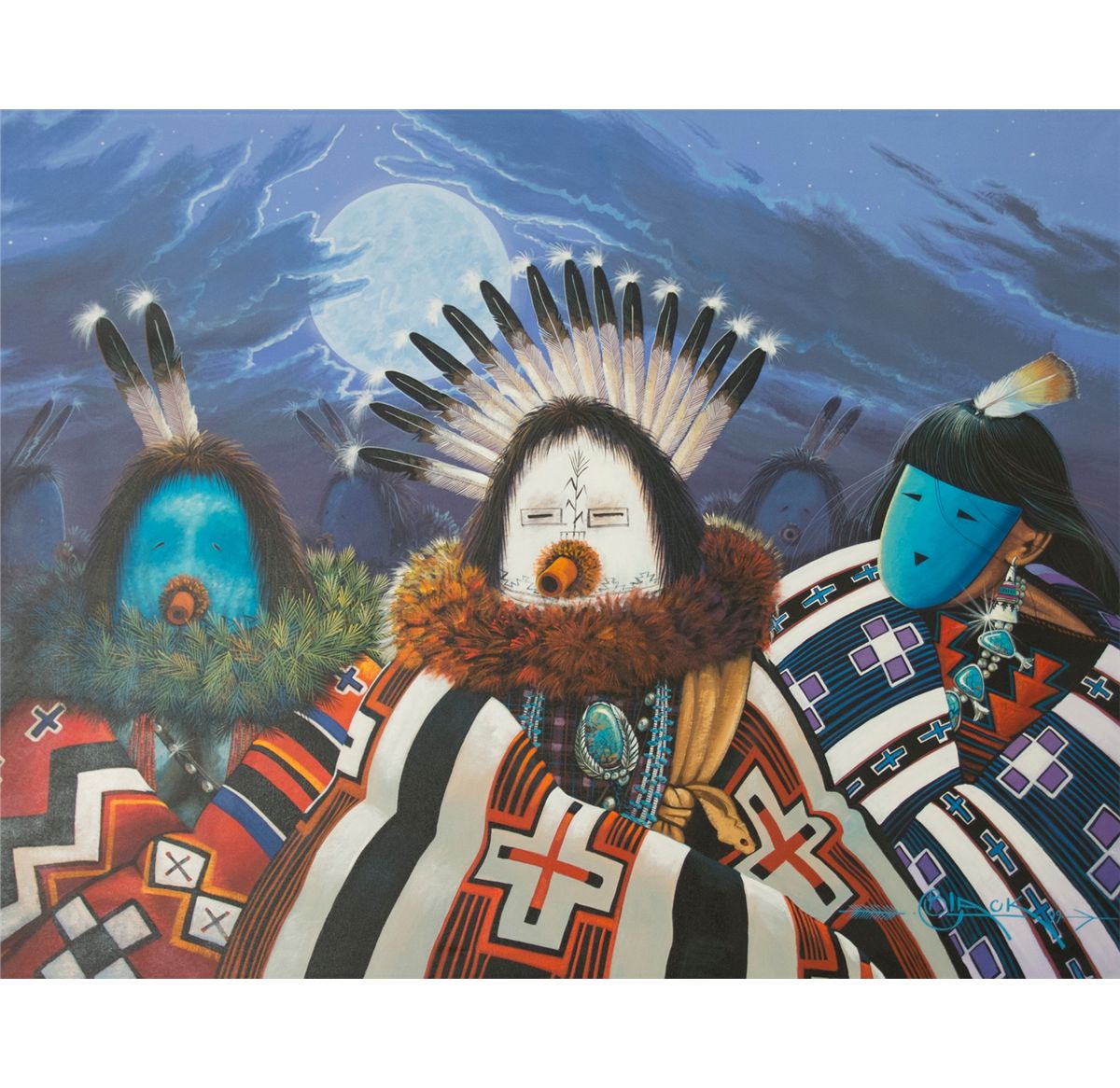 J. C. Black (20/21st century). Navajo Yesi and Blanket. 36" x 48" oil on canvas. Signed lower right: BLACK 99. Verso: titled and signed. Provenance: Indian River Gallery.
