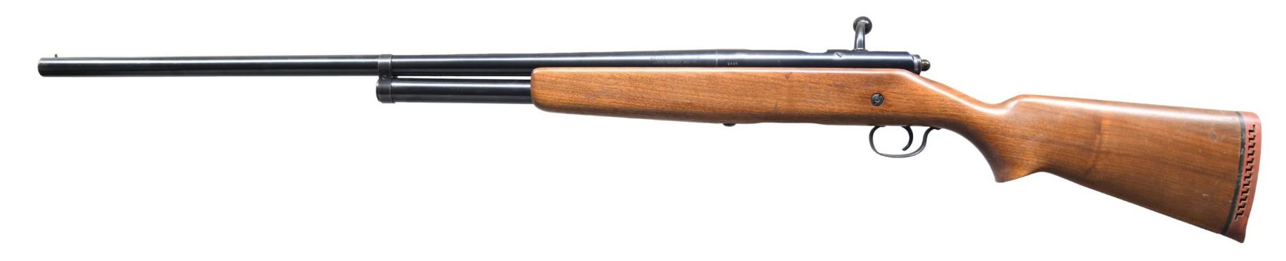 Cal. 12 Ga., 2 3/4". S# 2660. Mfg. by Hi-Standard for Sears, Roebuck & Co. Bbl. 28" w/ brass bead & Full choke. Bottom eject action w/ tubular mag. Blued finish. Walnut stock w/ red ventilated pad. CONDITION: very good overall appearance with handling marks & mildew stains on buttstock. Shiny bore with light fouling. (25-3091/MD). CURIO. $100-200.