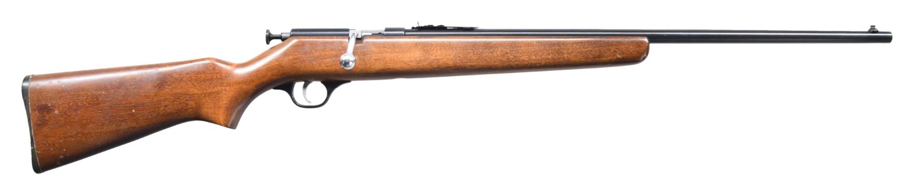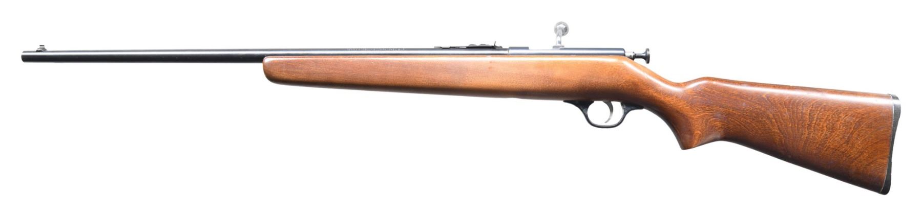 Cal. 22 LR. NSN. Mfg. by Marlin as Model 100 using JC Higgins trade name & sold by Sears, Roebuck & Co. Bbl. 24". Sporting sights. Manually cocked bolt. Hardwood stock. CONDITION: very good overall with noticeable handling marks & mildew stains on buttstock. Very good bore. (25-2758/MD). CURIO. $75-150.