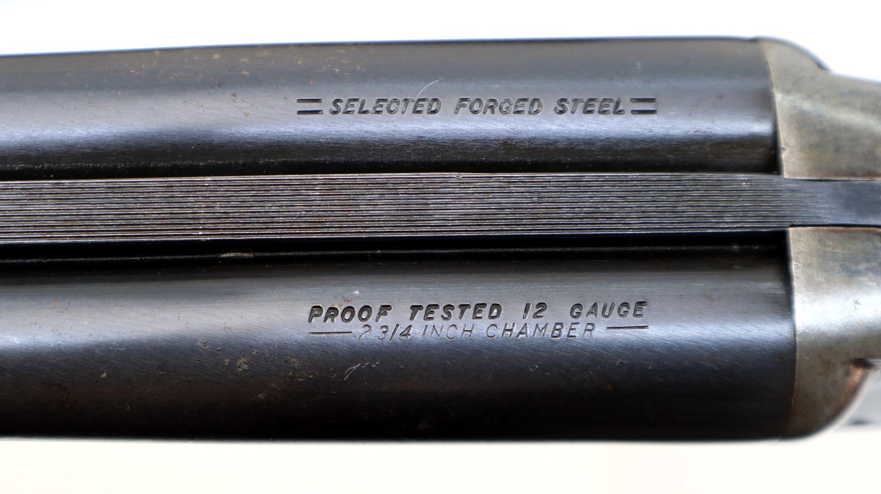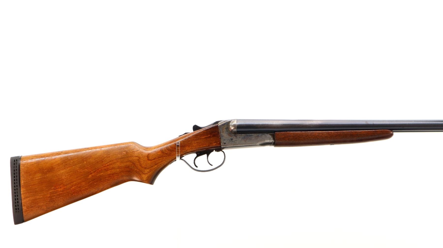 Main Description: Silver bead, blued barrels with solid rib, colour case hardened receiver, automatic safety, extractor, double triggers. Two piece wood stocks, pistol grip cracked behind receiver on left side, black vented rubber recoil pad.