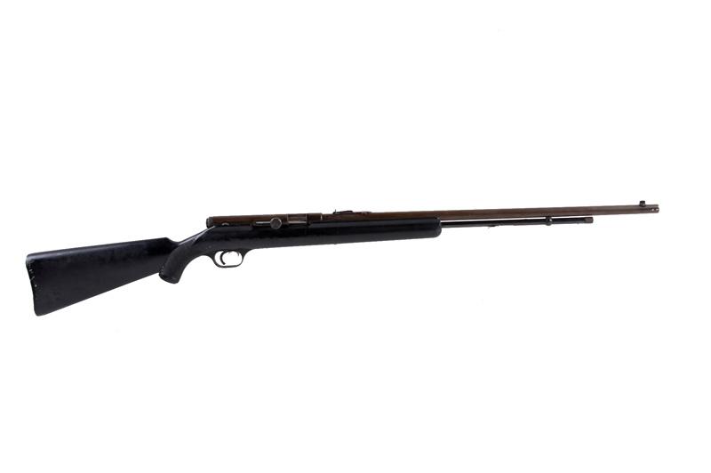 Condition: GoodSemi auto tube magazine .22 rifle. Blued finish, checkered fiberglass pistol grip stock with plastic butt plate, 24" barrel with 3/4" magazine tube and standard rifle sights, good bore and action.Condition: Good with barrel turning brown, stock shows use.