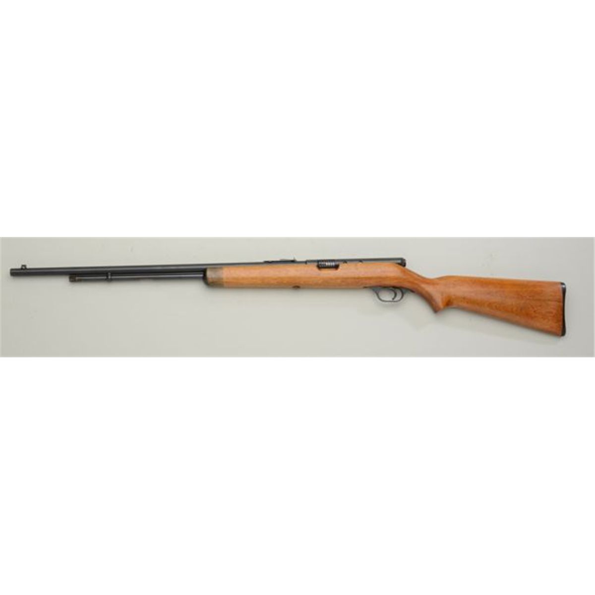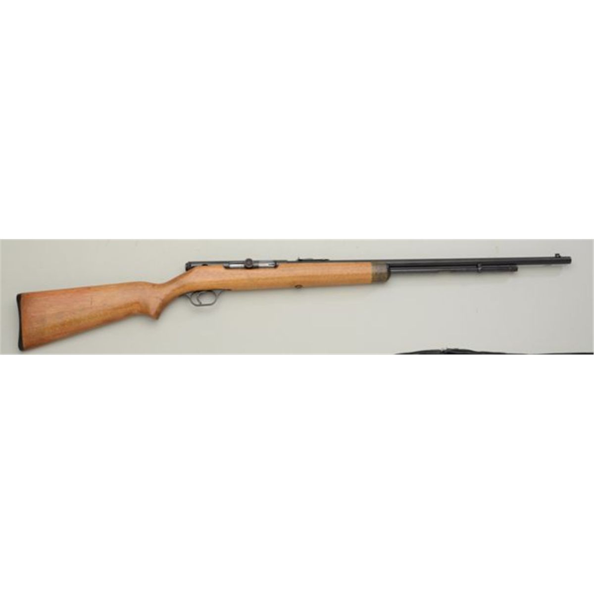 J.C. Higgins Model 101-16 semi-auto rifle, .22 short, long or long rifle cal., 24” round barrel, black finish, wood half stock, #NVSN. This gun is in overall very good condition showing the majority of itsoriginal finish, very good bore, action, markings and wood stock. Est.: $75-$125.