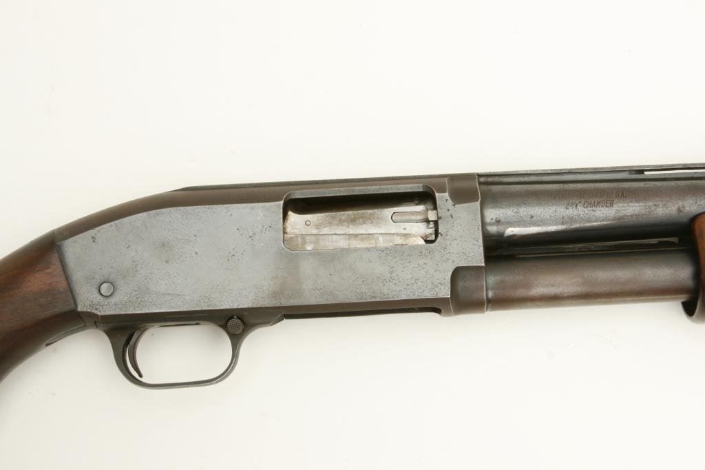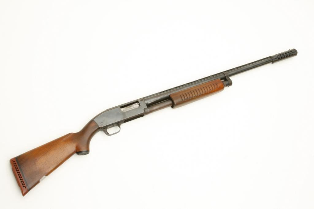 gauge, serial #NSNV. The shotgun is in good overall condition with a 26” barrel with a 4 ¾” muzzle break and a full length filed, ventilated rib. The barrel and action retain the majority of their flaking blue finish with some light surface rust noted. The smooth wood stocks are in good condition as well with a red ventilated rubber pad and a 12 ¾” LOP. The bore is good, action crisp and markings are legible. (Modern) Est.: $100-$200.