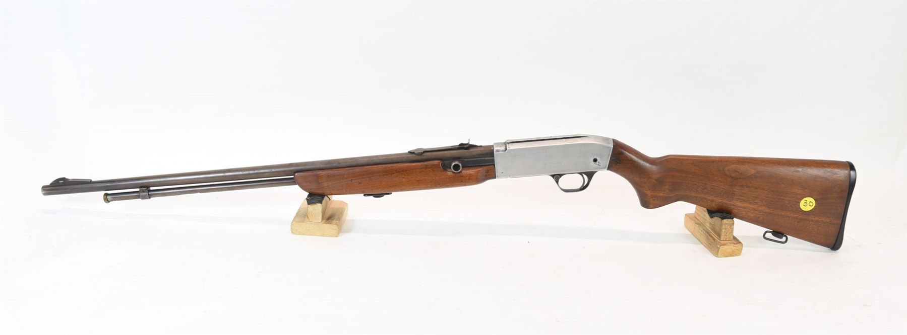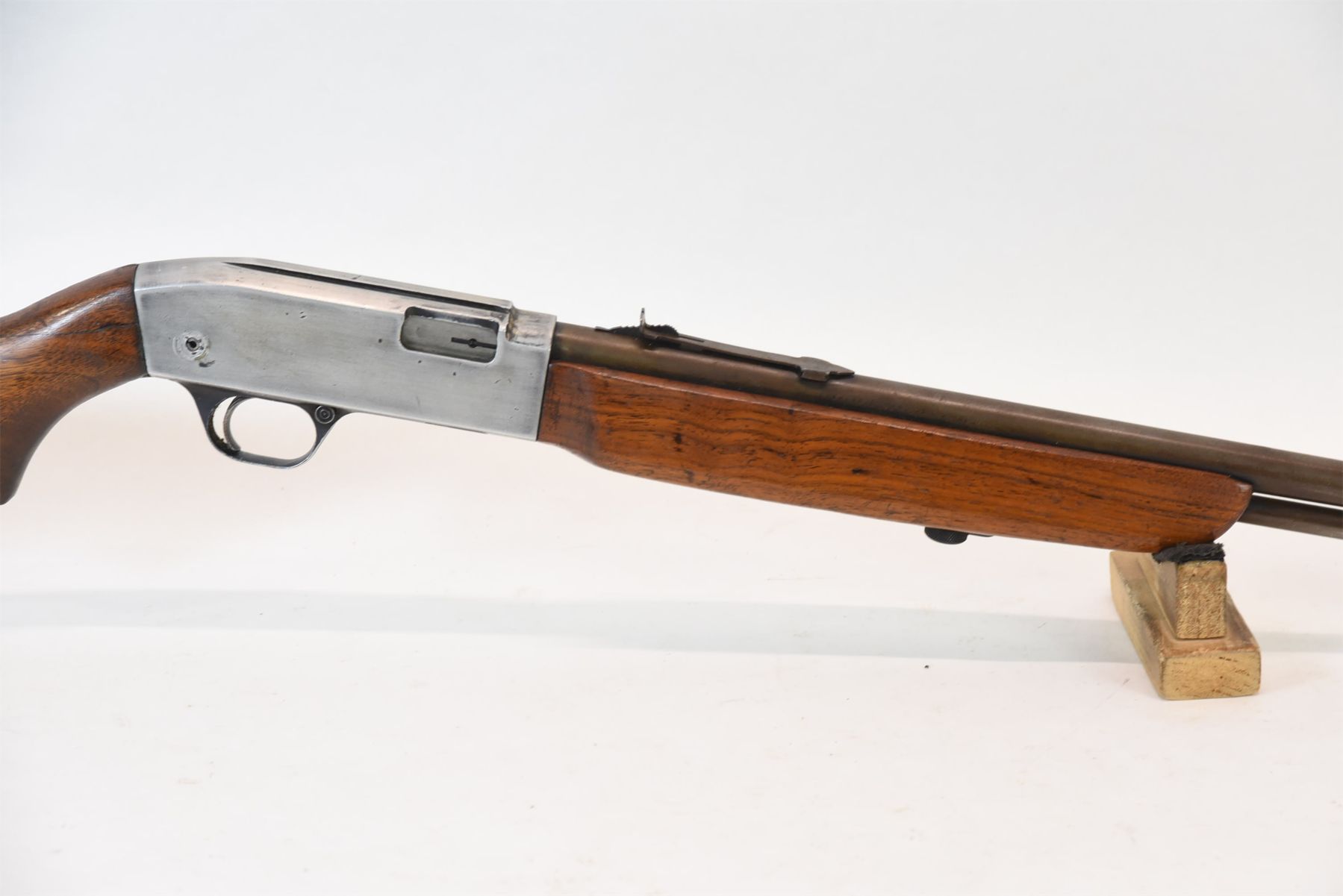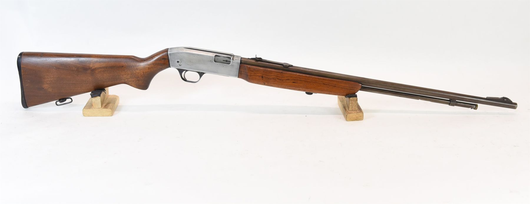 The wood has an approximate 2.5" crack on each side of the pistol grip and some other light scratches and dints. The bluing is brown. The bore is dirty, but very good. The pin going through the back of the receiver has been replaced with a roll pin. These guns were made for Sears & Roebuck.