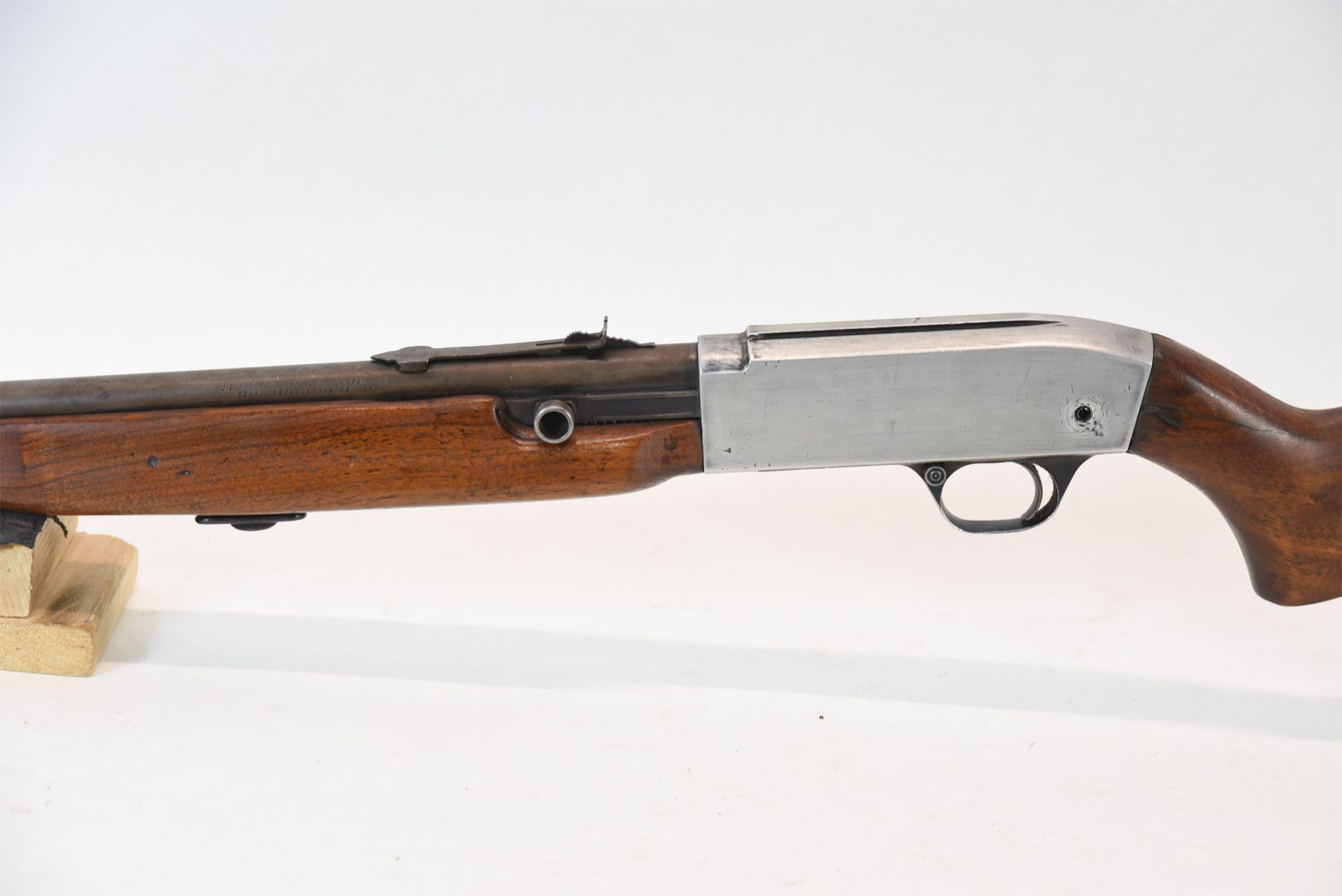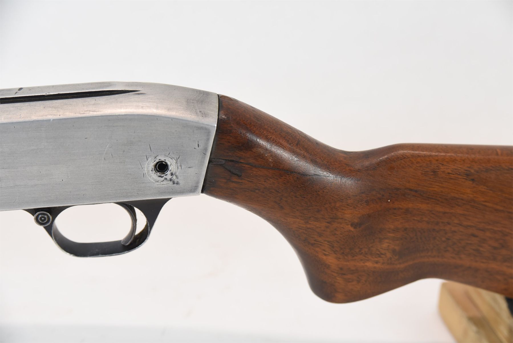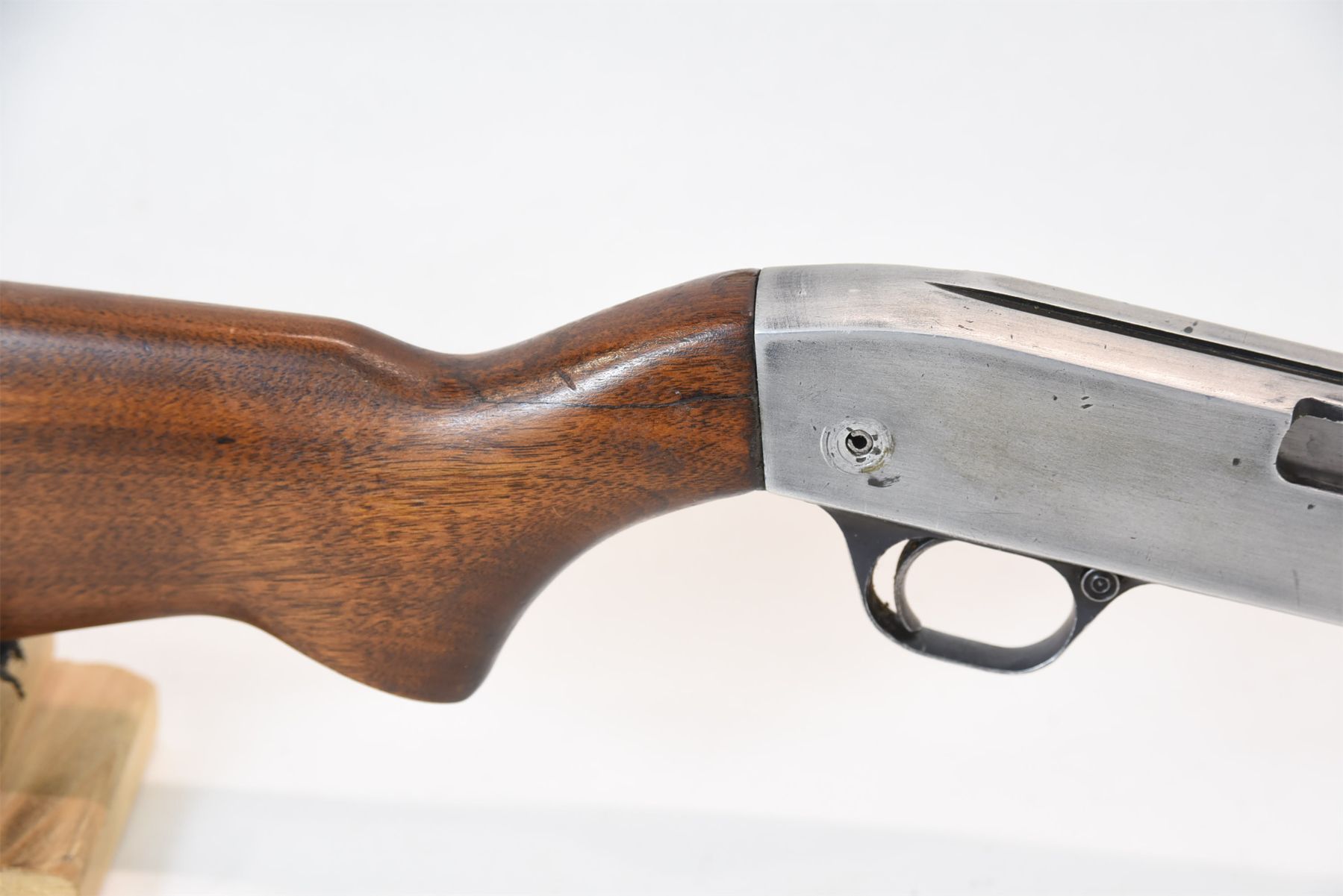 The wood has an approximate 2.5" crack on each side of the pistol grip and some other light scratches and dints. The bluing is brown. The bore is dirty, but very good. The pin going through the back of the receiver has been replaced with a roll pin. These guns were made for Sears & Roebuck.