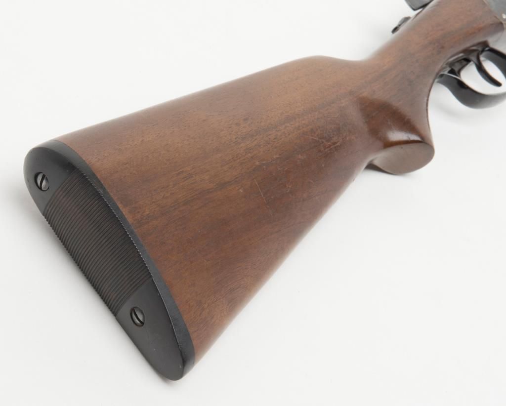 J.C. Higgins Model 311A SxS hammerless shotgun, 12 gauge, 18-1/4” barrels, blue and case hardened finish, wood stocks, double triggers, #NVSN in overall very good condition showing the majority of its original finish, good bore, actions,markings and wood stocks showing some wear and storage mars. From the estate of Joe Kiser. (Modern). Est.: $150-$300.