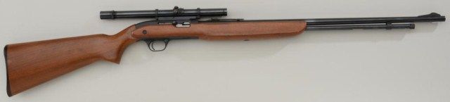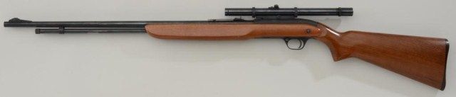 J.C. Higgins Model 36 semi-auto rifle, .22LR cal., 24” barrel, blue finish, wood stock, mounted wi