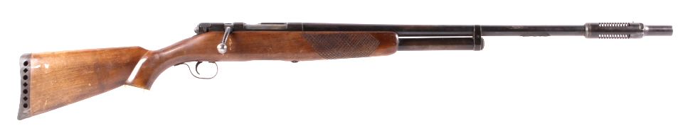 This is a Sear Roebuck And Co. J.C. Higgins Model 583.10 12 gauge bolt action rifle. This rifle has a rare Lyman Cutts (serial number M6725) choke tube. The rifle is in working condition. Manufactured from 1946-1950's.