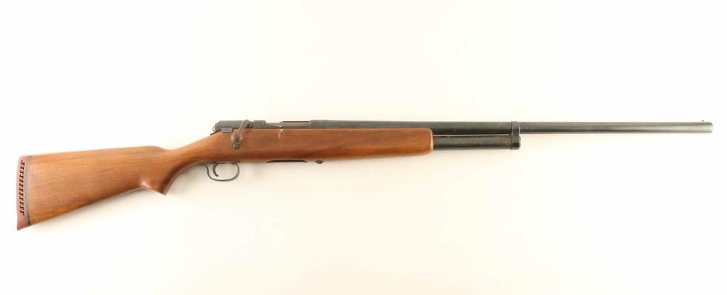 Bolt action shotgun features blued finish, wood stock with curved grip, ventilated rubber recoil pad, 28" barrel with fixed IM choke, brass front bead, manual safety, tube magazine under barrel. Marked for 2-3/4" shells. Bore is good to very good condition. Blued finish retained on majority of metal surfaces, with patina and light rust, heavy rust on bolt handle & rear of receiver. Wood stock is very good condition. Recoil pad has gone a bit hard. Condition is NRA Good *** C&R Firearm ***