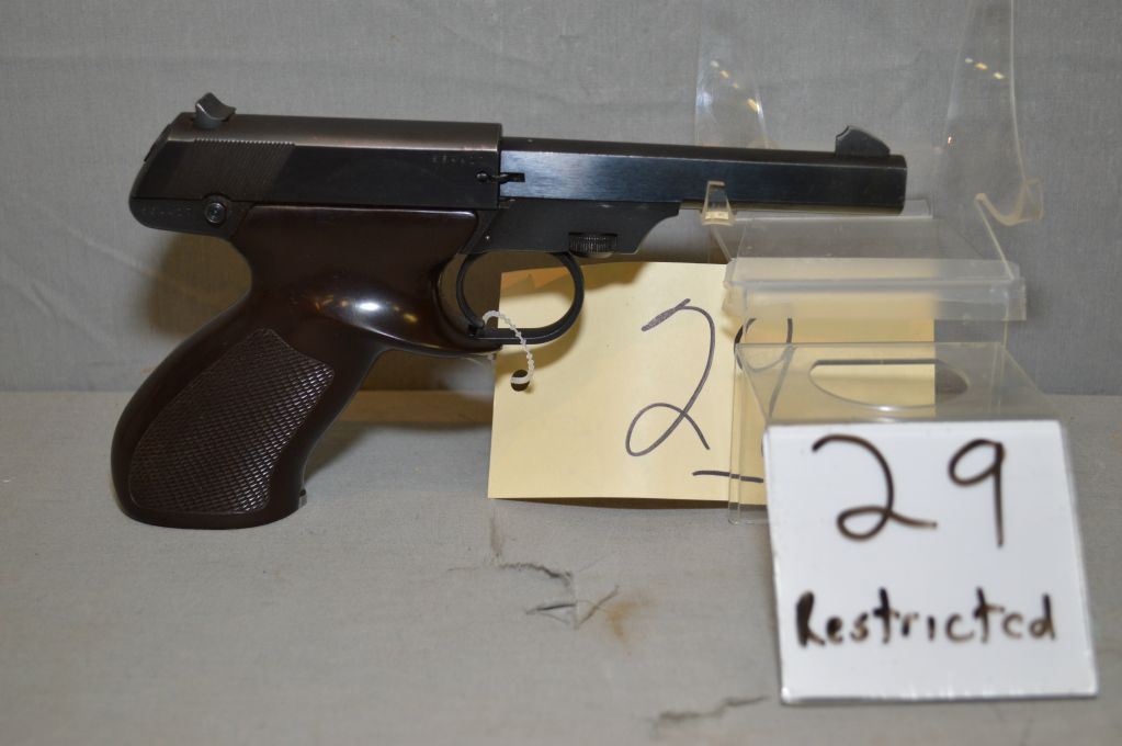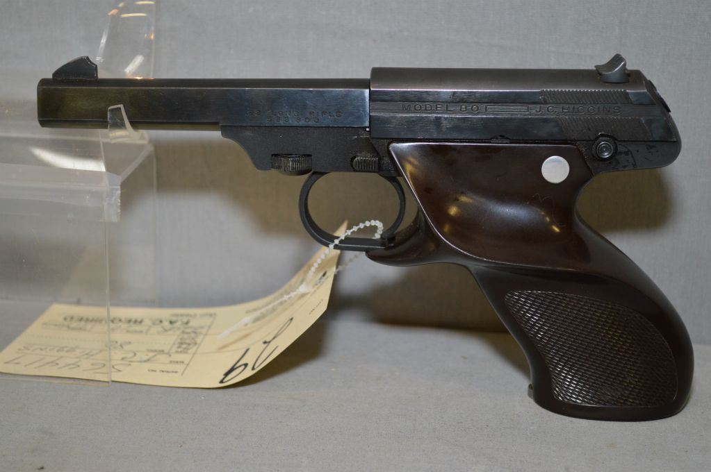 J.C. Higgins Model 80 .22 LR cal 10 shot Semi Auto Pistol w/ 114 mm bbl [ blue finish, fixed sights, right hand composite grips, appears good overall ] Ser # 564417 Restricted Handgun Cert # tci