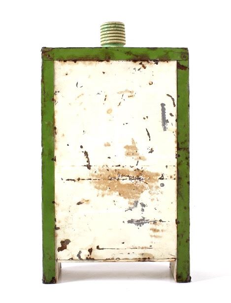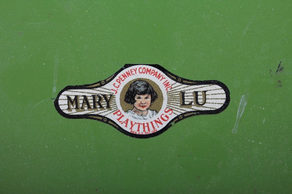 Available in this lot for your bidding pleasure is a vintage Mary Lu Playthings Icebox manufactured by the J.C.Penney Company, Inc. A fantastic offer for toy collectors. This piece has a sturdy wooden interior with a tin exterior. The icebox shows its original vibrant green color and metal hinges. This piece is in good condition but shows some wear for its age. It measures 14 1/2" tall, 8" wide, and 3 1/2" deep.