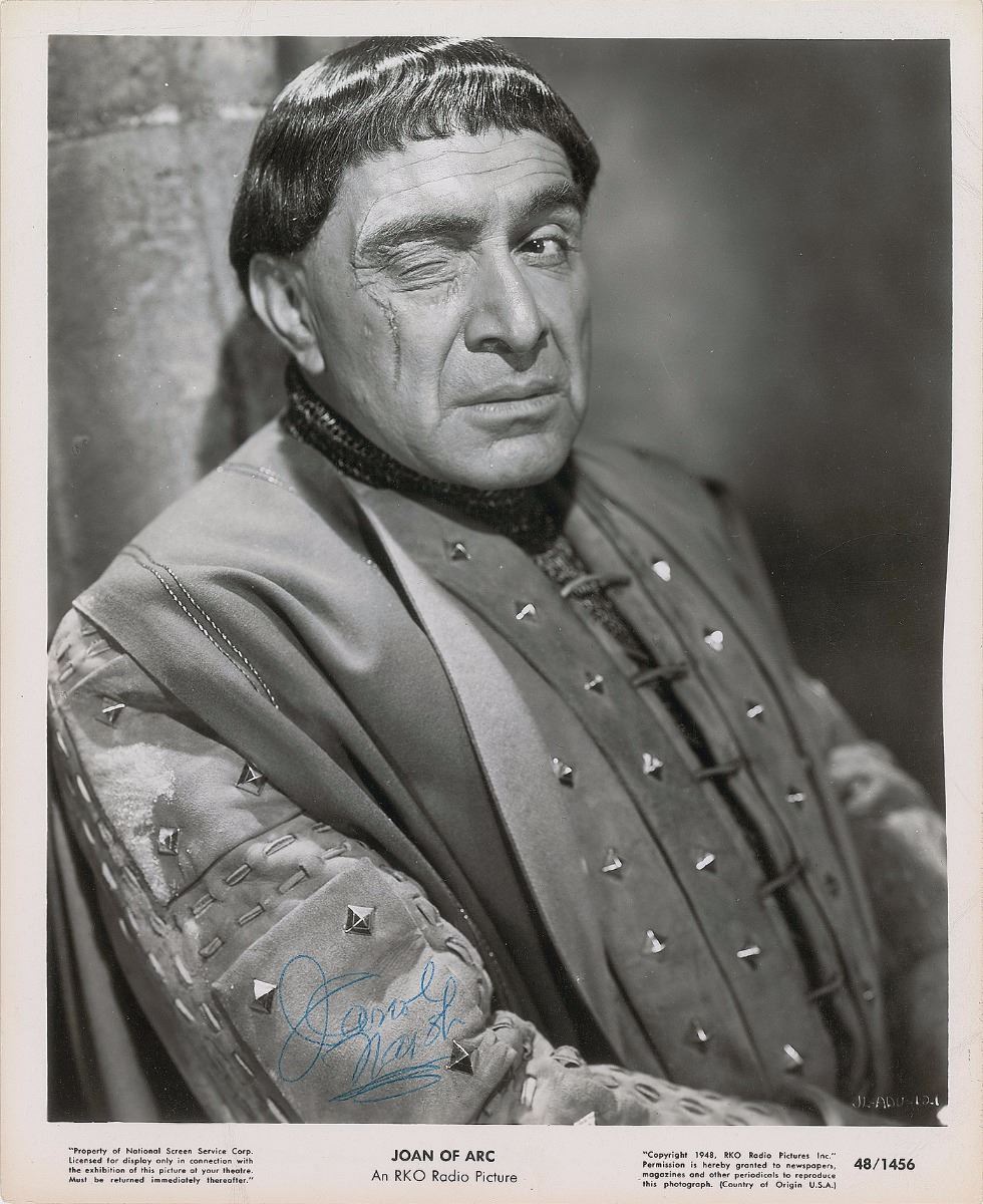 Vintage glossy 8 x 10 photo of Naish as he appeared in the 1948 film Joan of Arc, signed in blue ballpoint. In fine condition, with scattered light creasing.