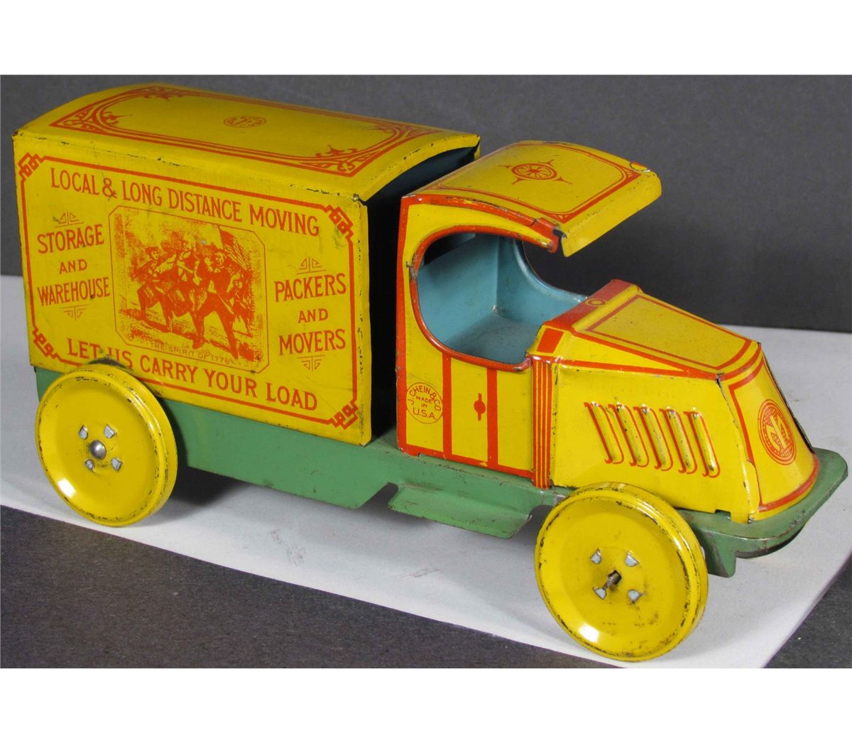 J. Chein No. 102 Mack Moving Van Tin Litho Toy, ca. 1920s. Light scratches, very minor paint loss otherwise very good condition. 7 1/2 inches long.